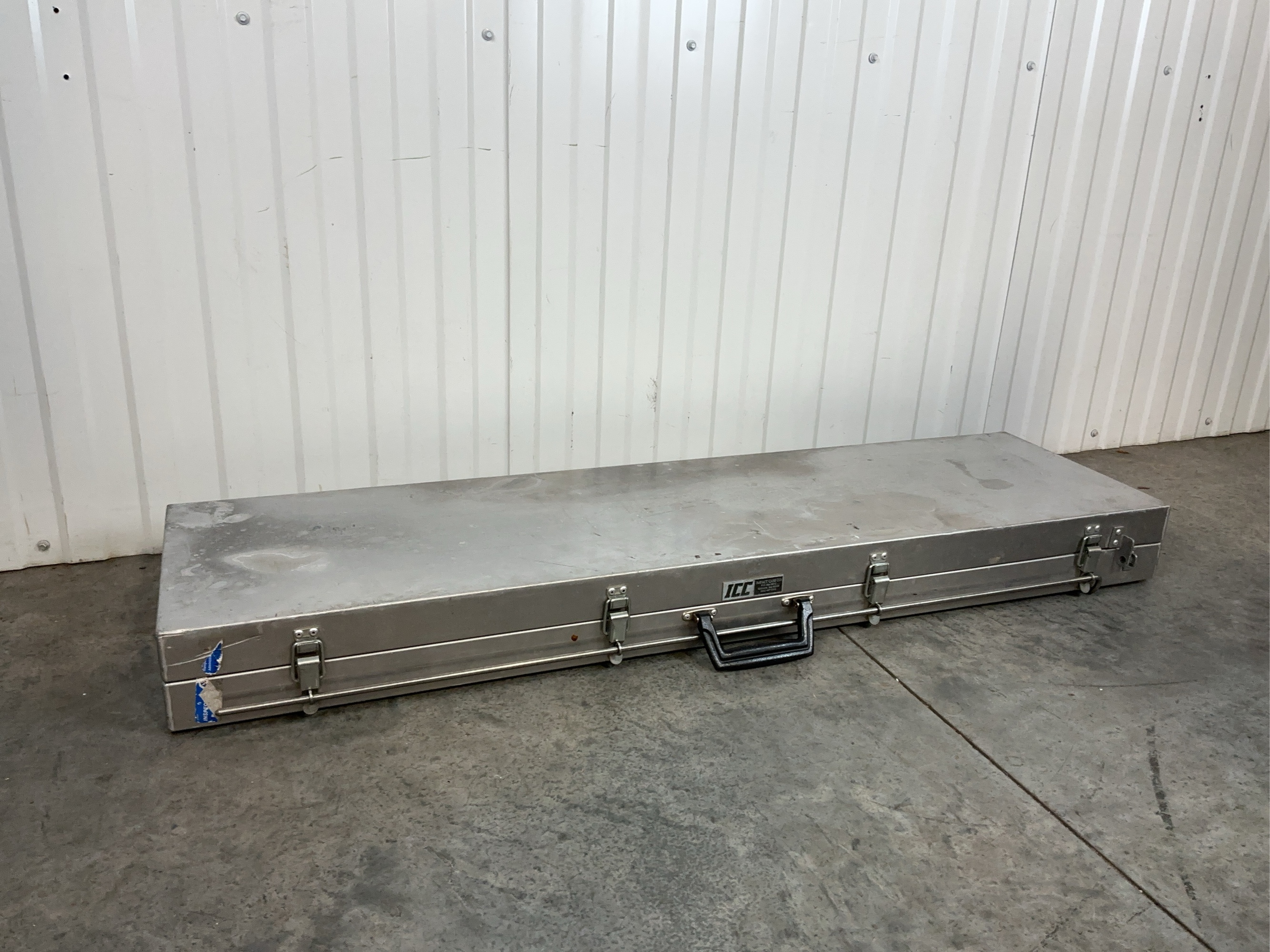 Aluminum equipment case by Impact Case Company (ICC). Approximately 52x14x5 inches. Showing wear and tear on outside of case.