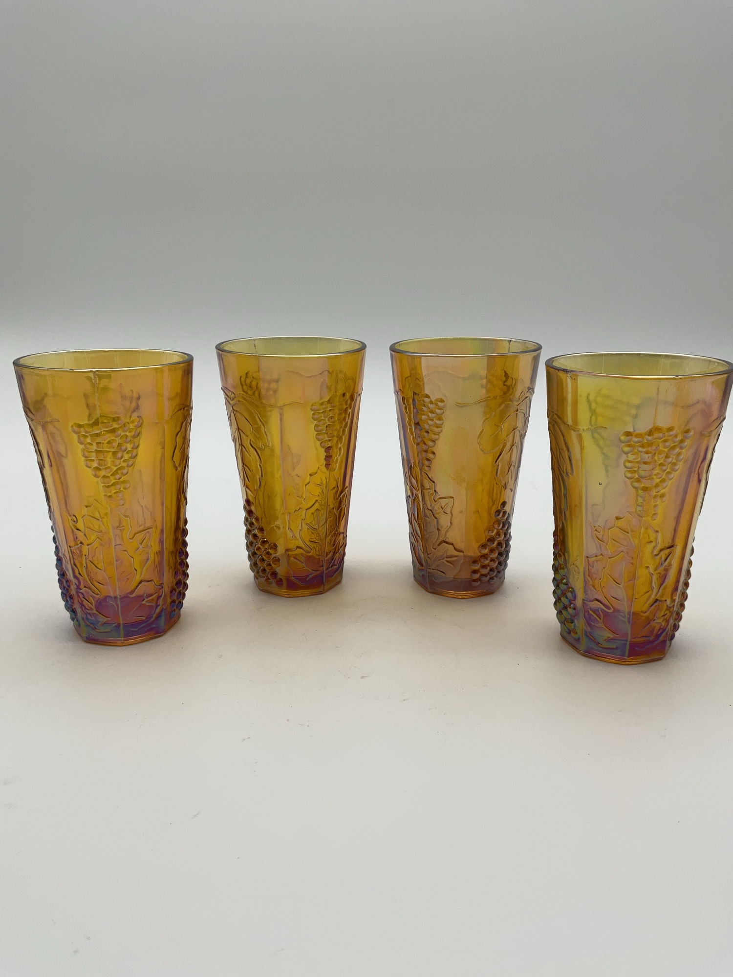 Set of Four Iridescent Carnival Tumblers with Grape Motif