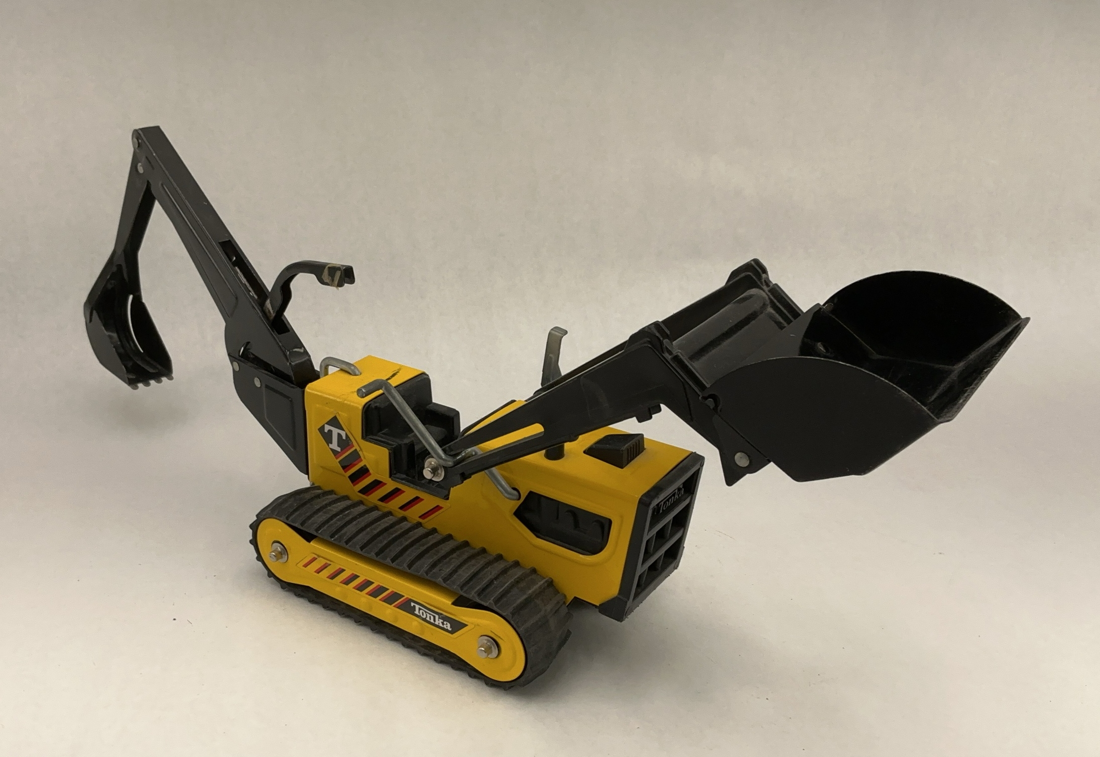 Yellow and black Tonka hydraulic excavator toy vehicle. Measures approximately 26x5x9.