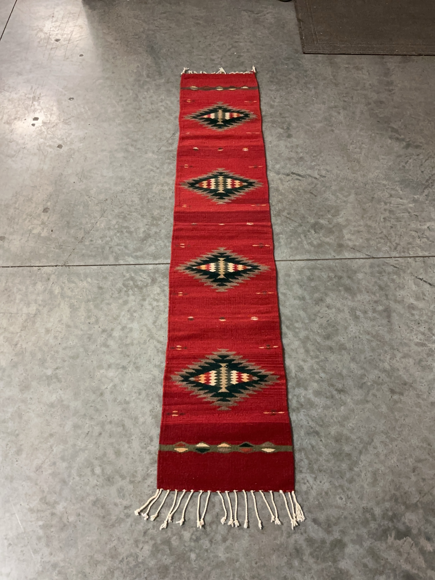 Red Woven Southwestern Style Rug measuring 80x16 inches.