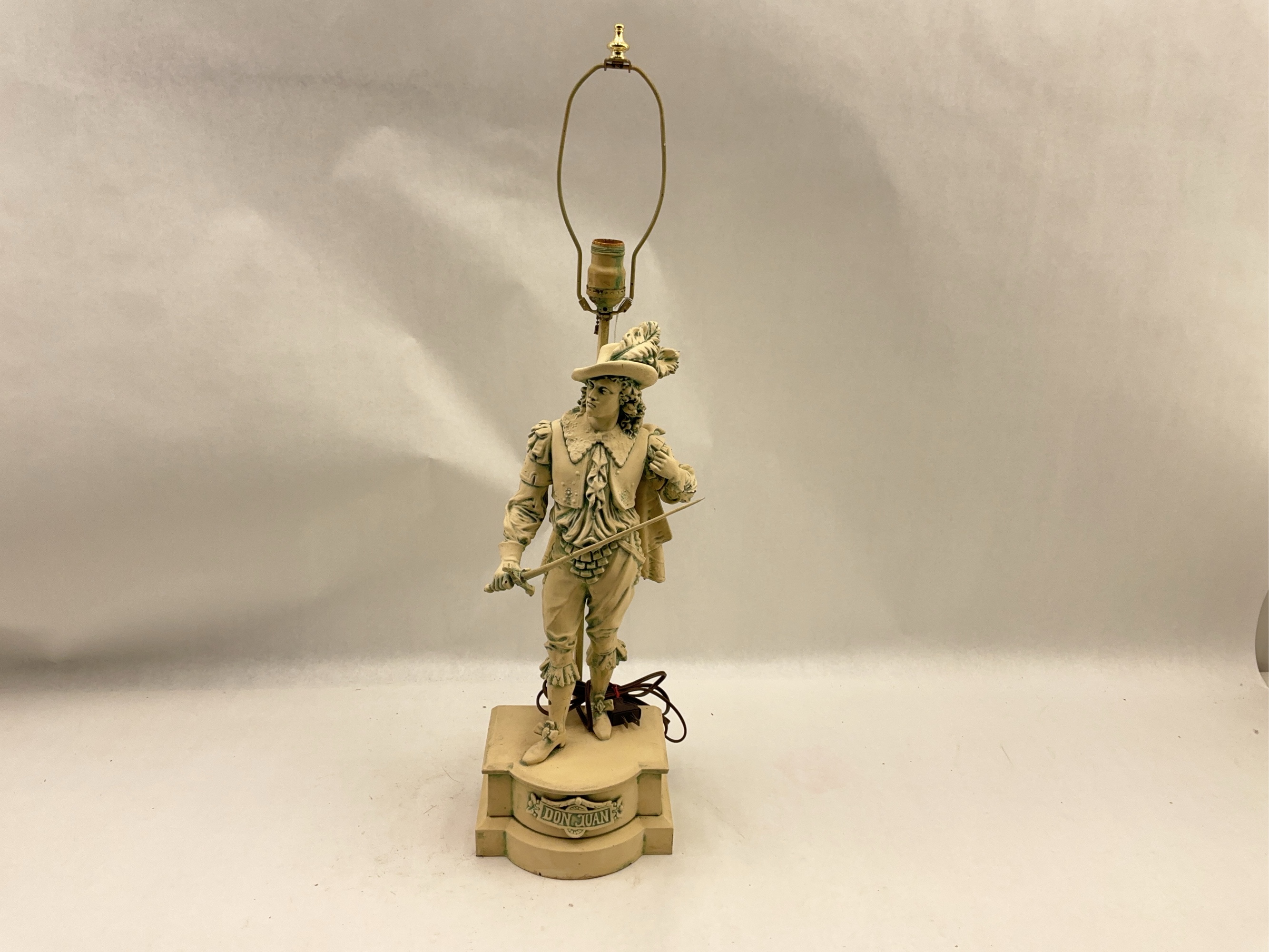 This listing is for a Don Juan statue lamp. The lamp stands 32 inches tall and the base measures 8x6 inches. A great piece to add character to any room.