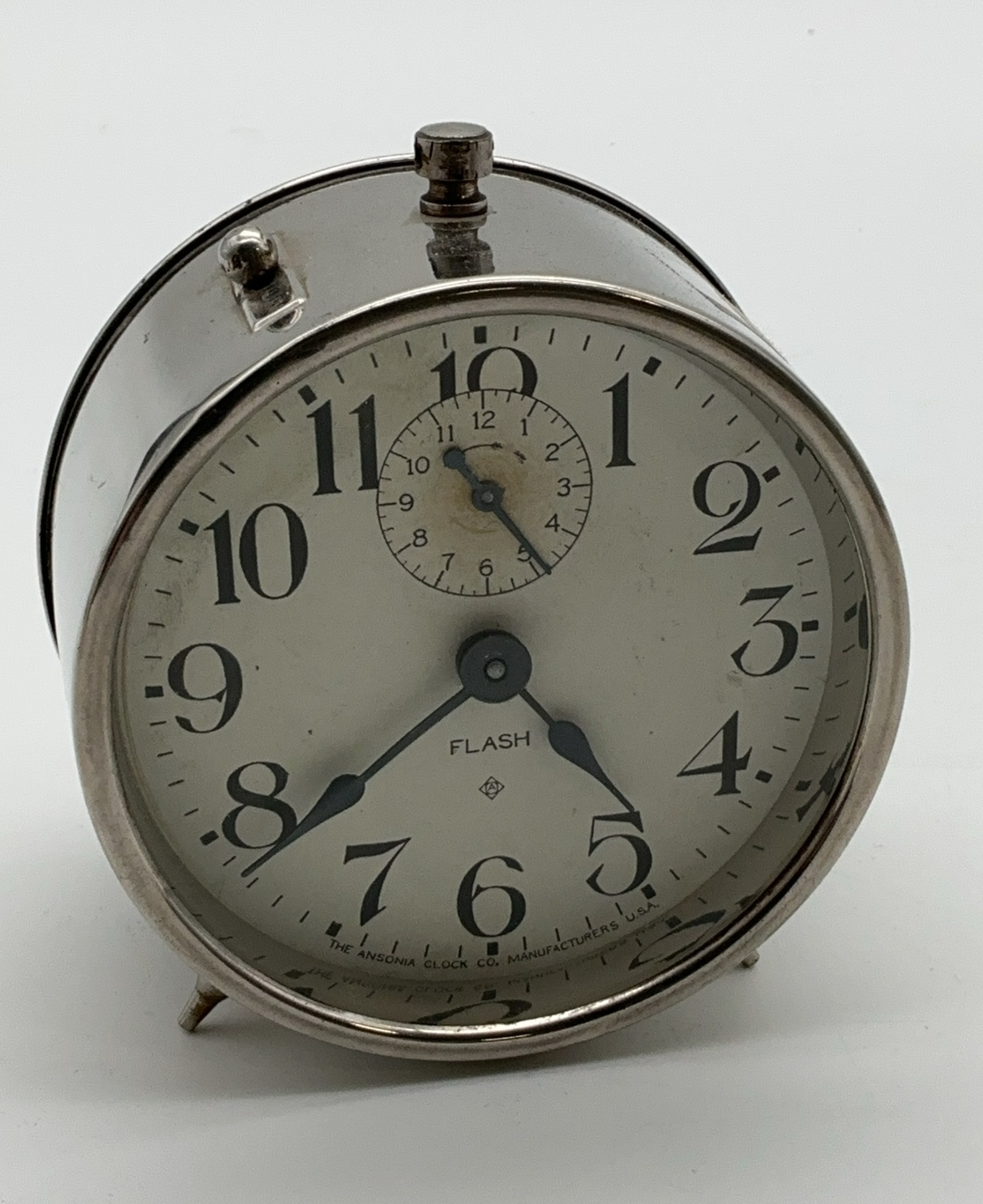 Ansonia Flash Alarm Clock. Measures 4x3x4.5. Tape residue present.