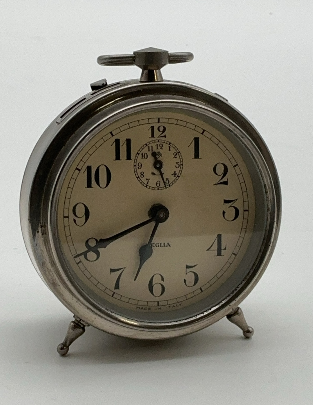 EGLIA travel alarm clock, made in Italy. Measures approximately 3x1.5x3.5 inches.