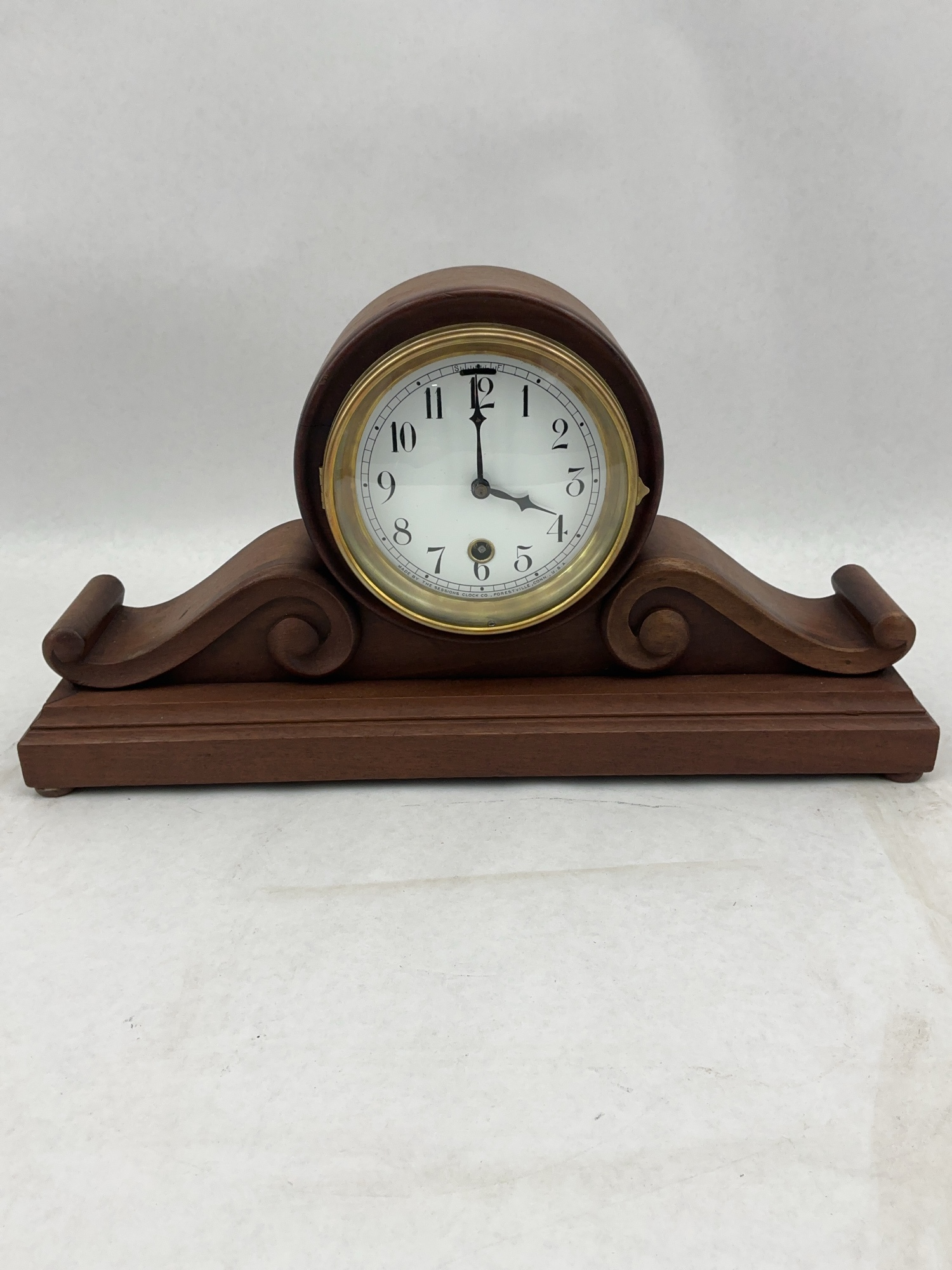Mantle clock, Sessions Clock Co. Forestville Conn. USA, wood construction, comes with key, tic toks, missing S-F, measures 17 x 3 x 9.