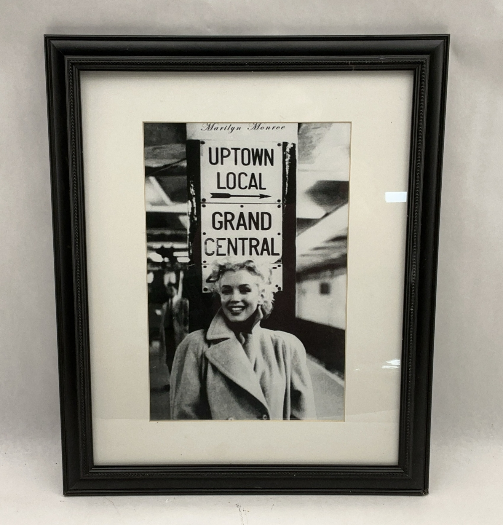 Framed Marilyn Monroe print featuring "Uptown Local Grand Central" imagery. Measures 23x19 inches.
