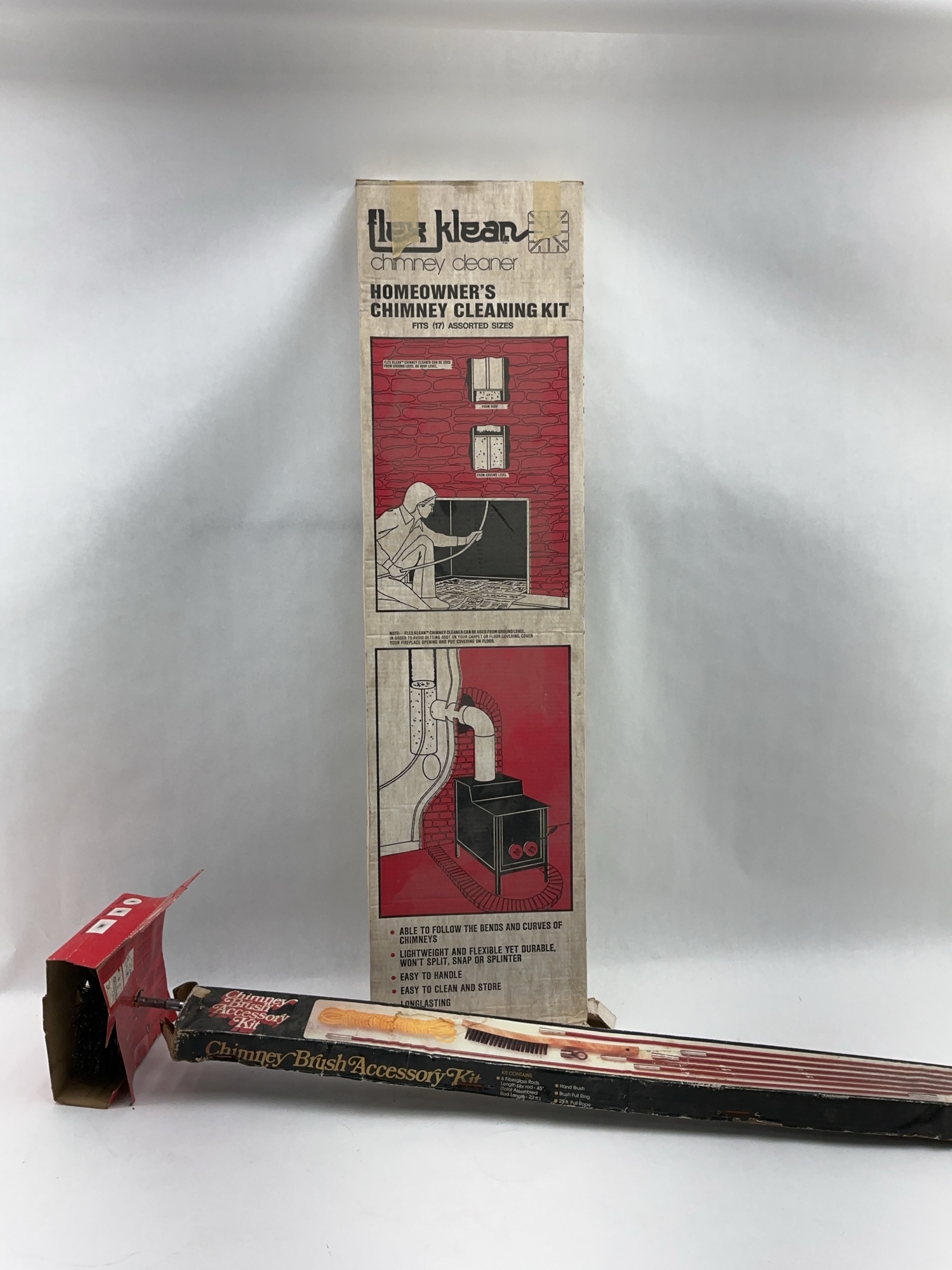 This listing includes a Flex Klean Homeowner's Chimney Cleaning Kit, which fits 17 assorted sizes. Also included is a Target Chimney and Flue Cleaning Brush. Both kits appear to be complete and ready for use.
