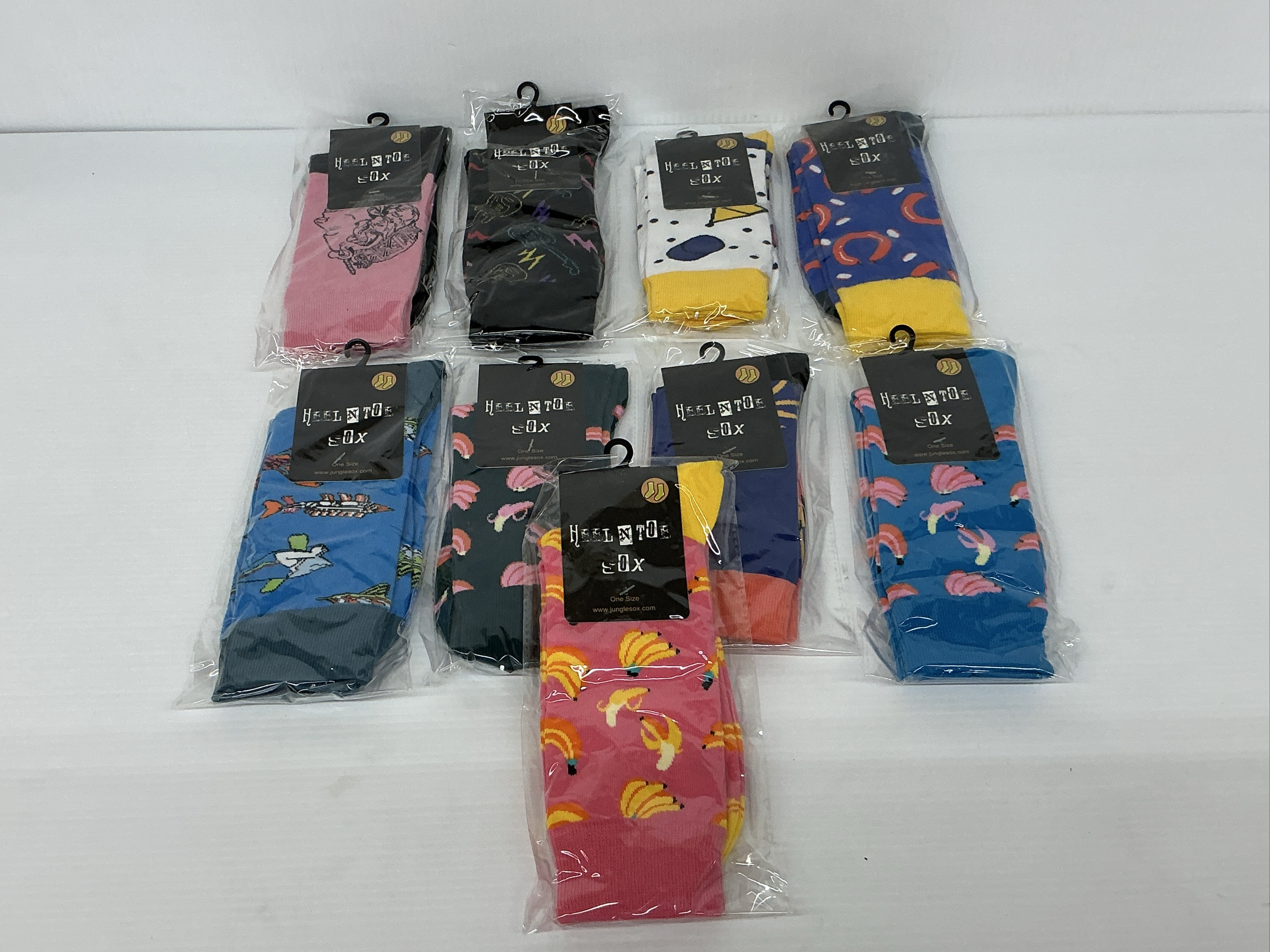 9 Pairs of Heel N Toe Sox - Assorted Designs; New in Packaging; One Size