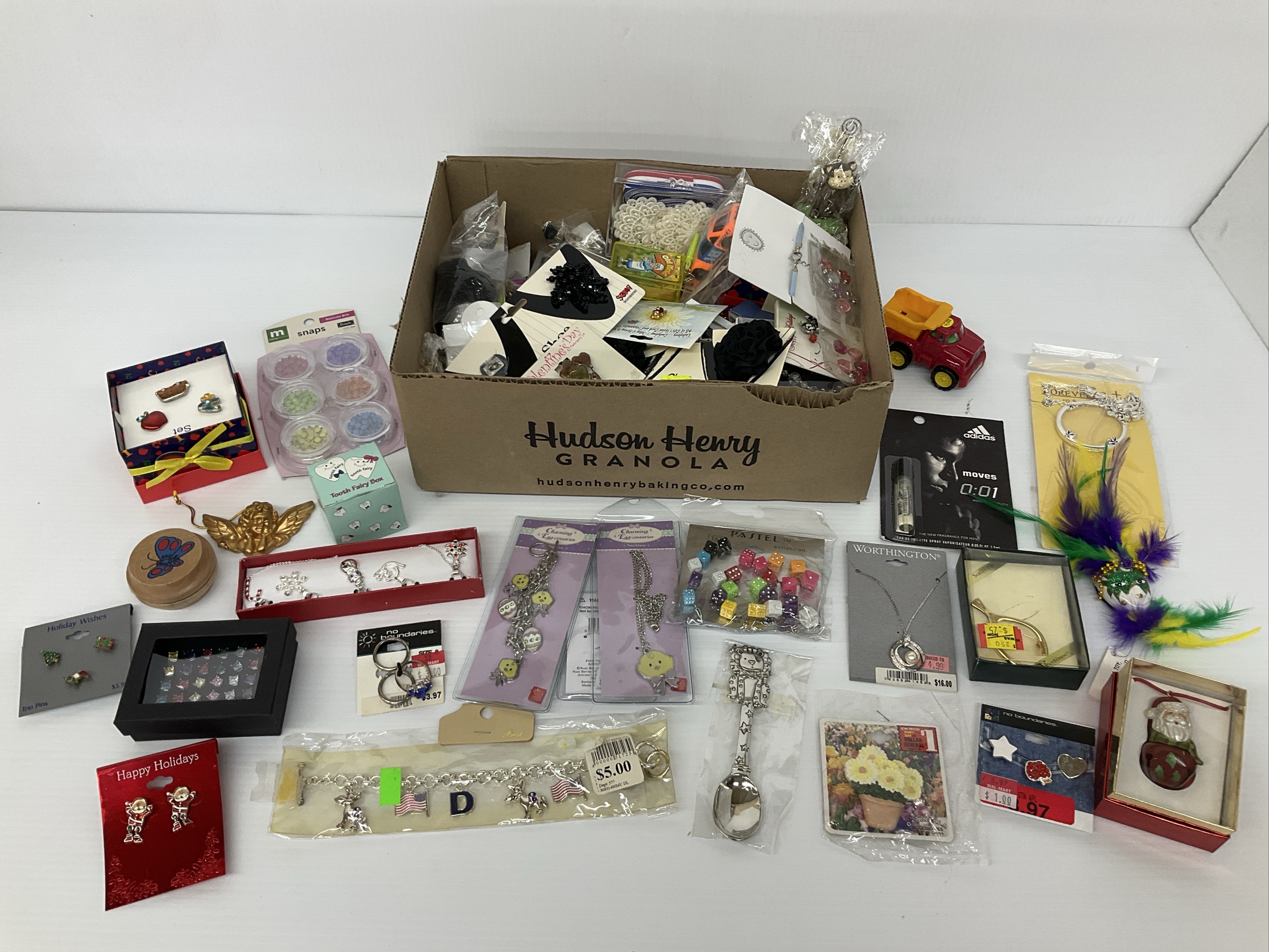 Large Assortment of Costume Jewelry, Embellishments, Charms, and Other Items