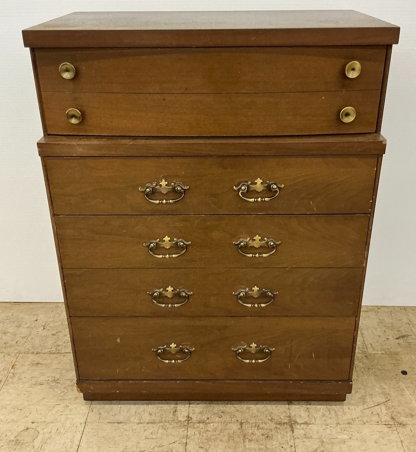 Bassett wooden chest featuring two small drawers on top and four larger drawers below. Measurements are 43 x 32 x 18 in. Matches lot 263.