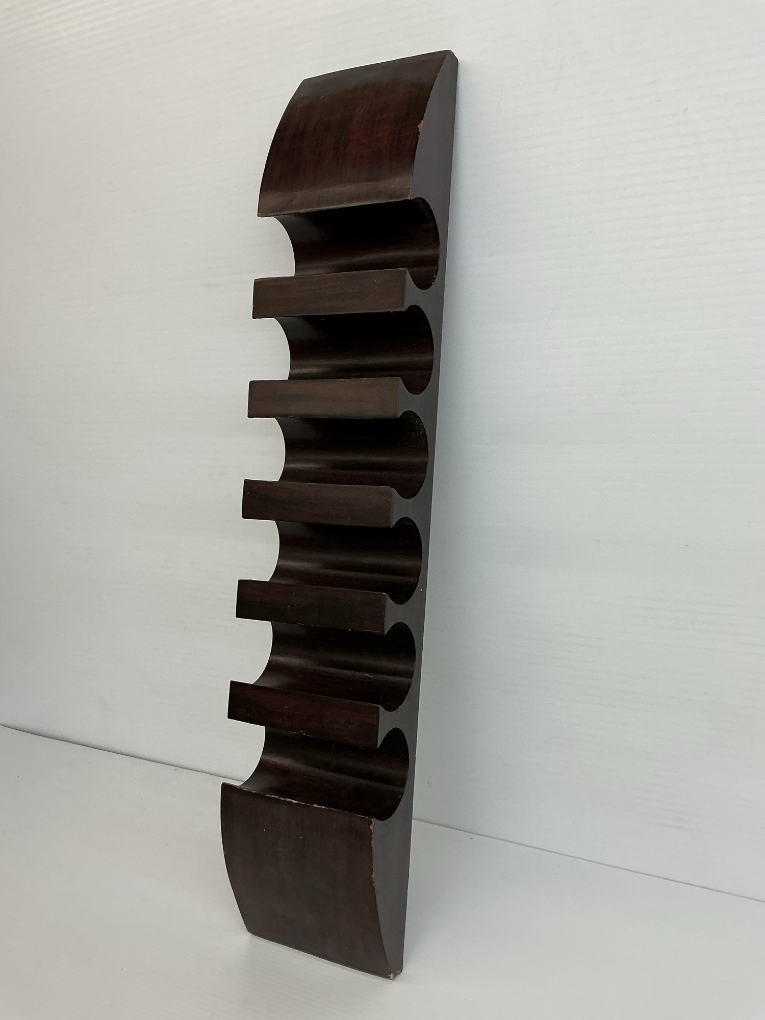 Wall mounted wine rack capable of holding 6 bottles. This wooden wine rack can be easily mounted with two screw holes on the back. Could also be used to hold towels in a bathroom. 36 x 7 x 3 in.