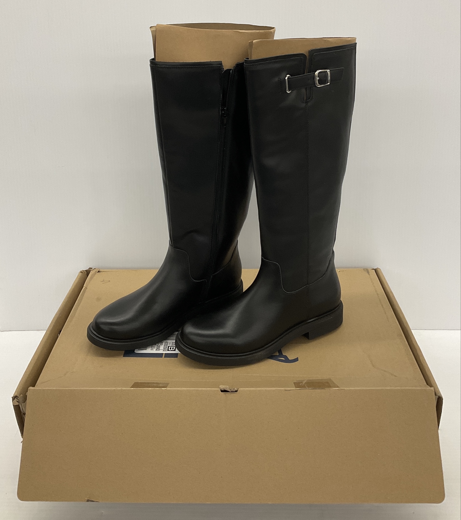 Lands' End women's leather knee-high riding boots. Black. Size US 8.5, Medium/Standard width, UK 6.5, EU 39. Style number 550727.