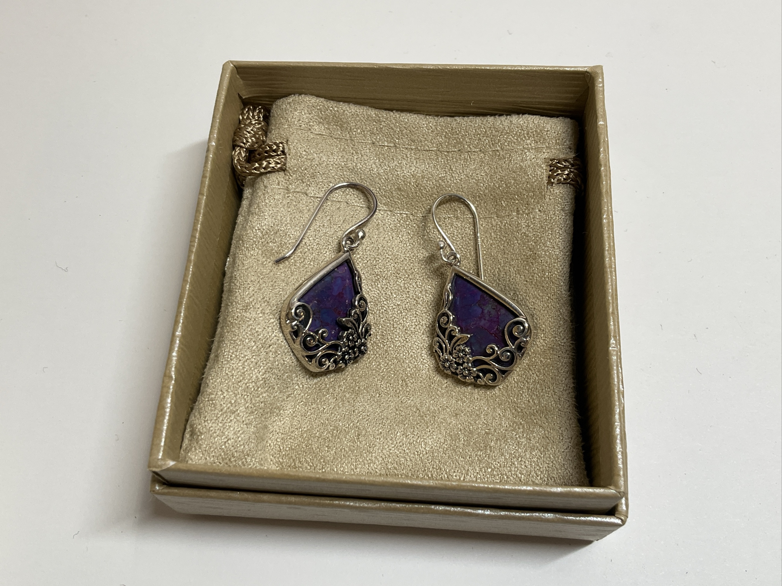 Vintage Sterling Silver and Purple Stone Drop Earrings