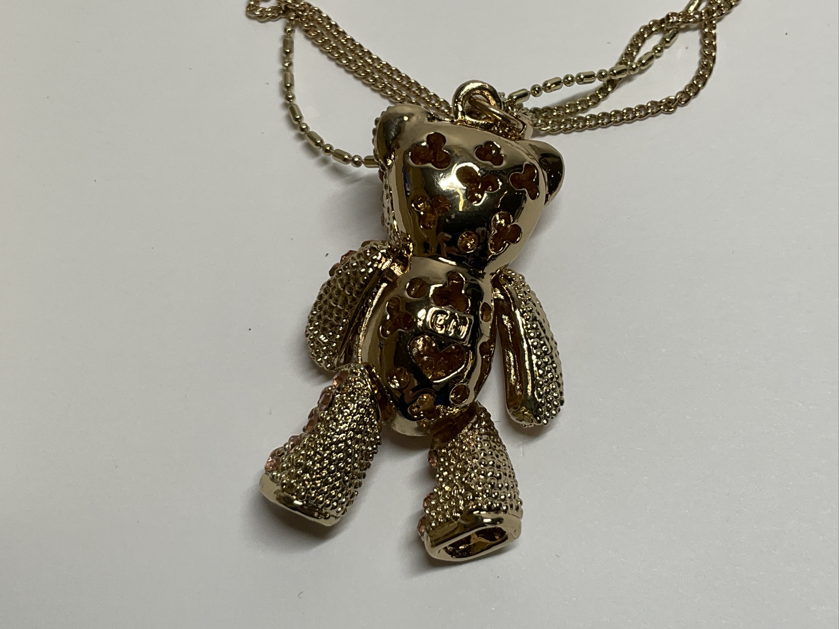 Off Park Collection Black & Peach Crystal gold tone Teddy Bear Pendant & 18 in. Triple Strand Chain. Includes original box.
