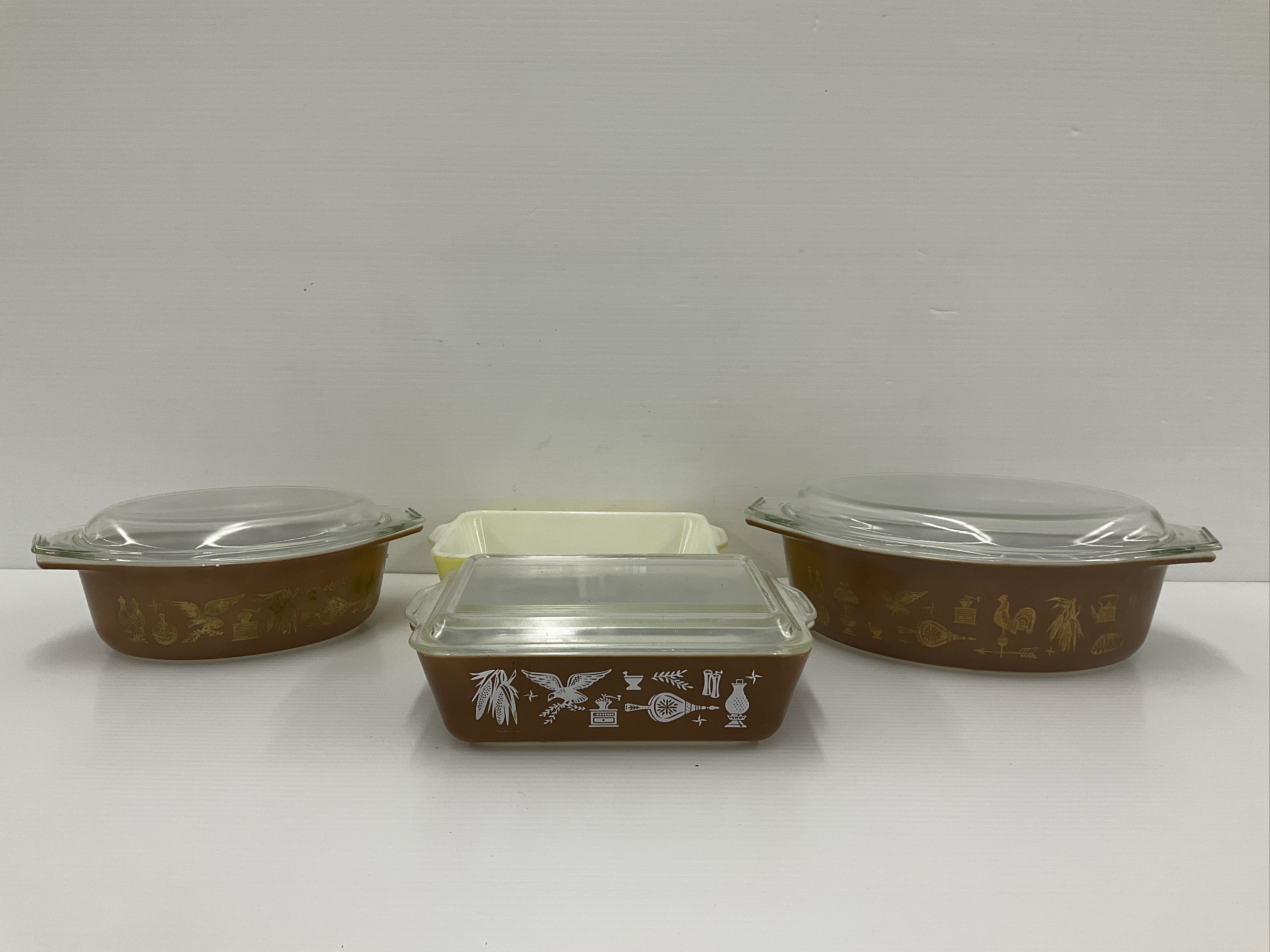 Pyrex Early American Pattern & Yellow Casserole Dishes