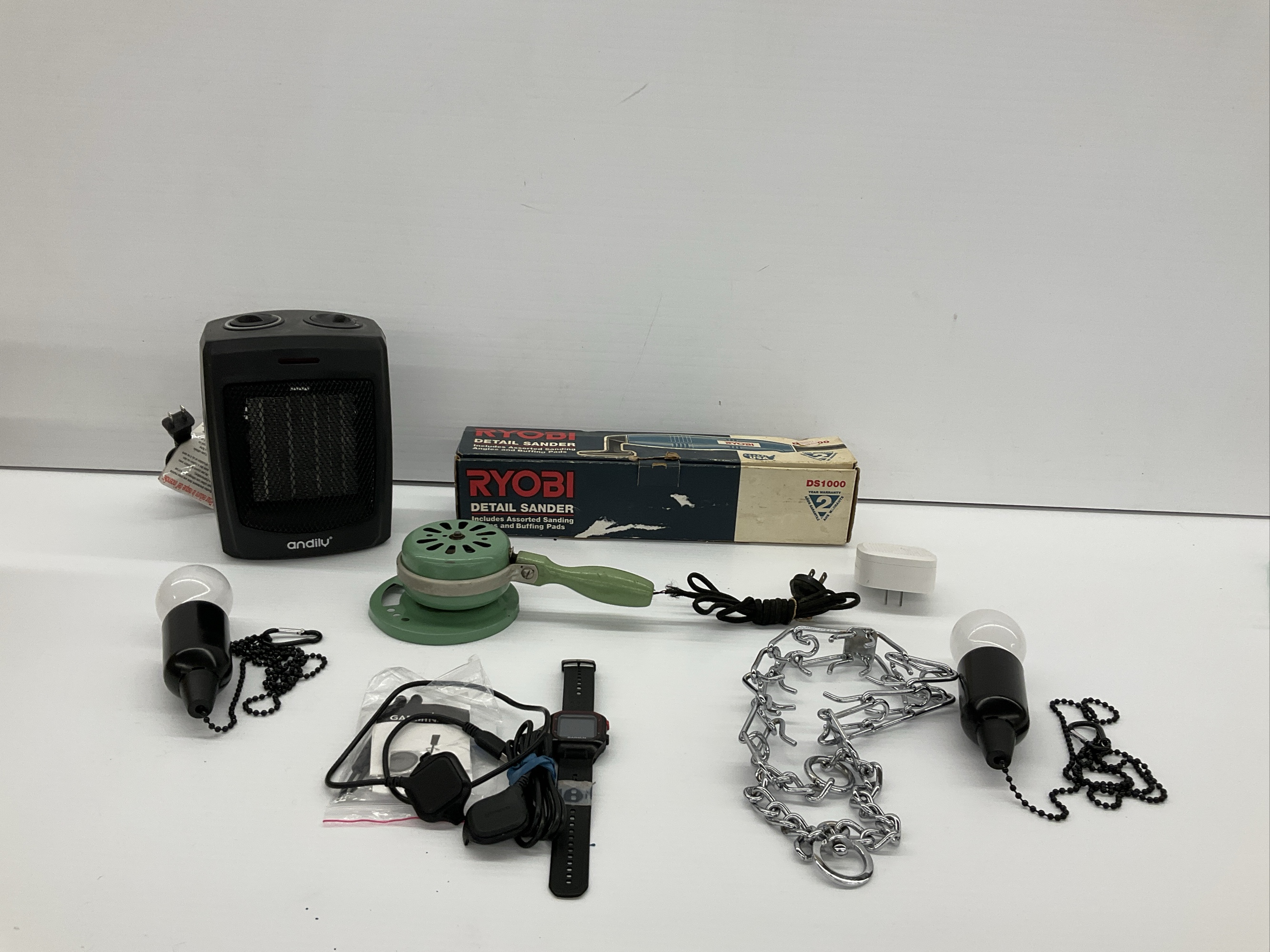 Ryobi Detail Sander, Garmin Watch, Mini Heater and Other Items