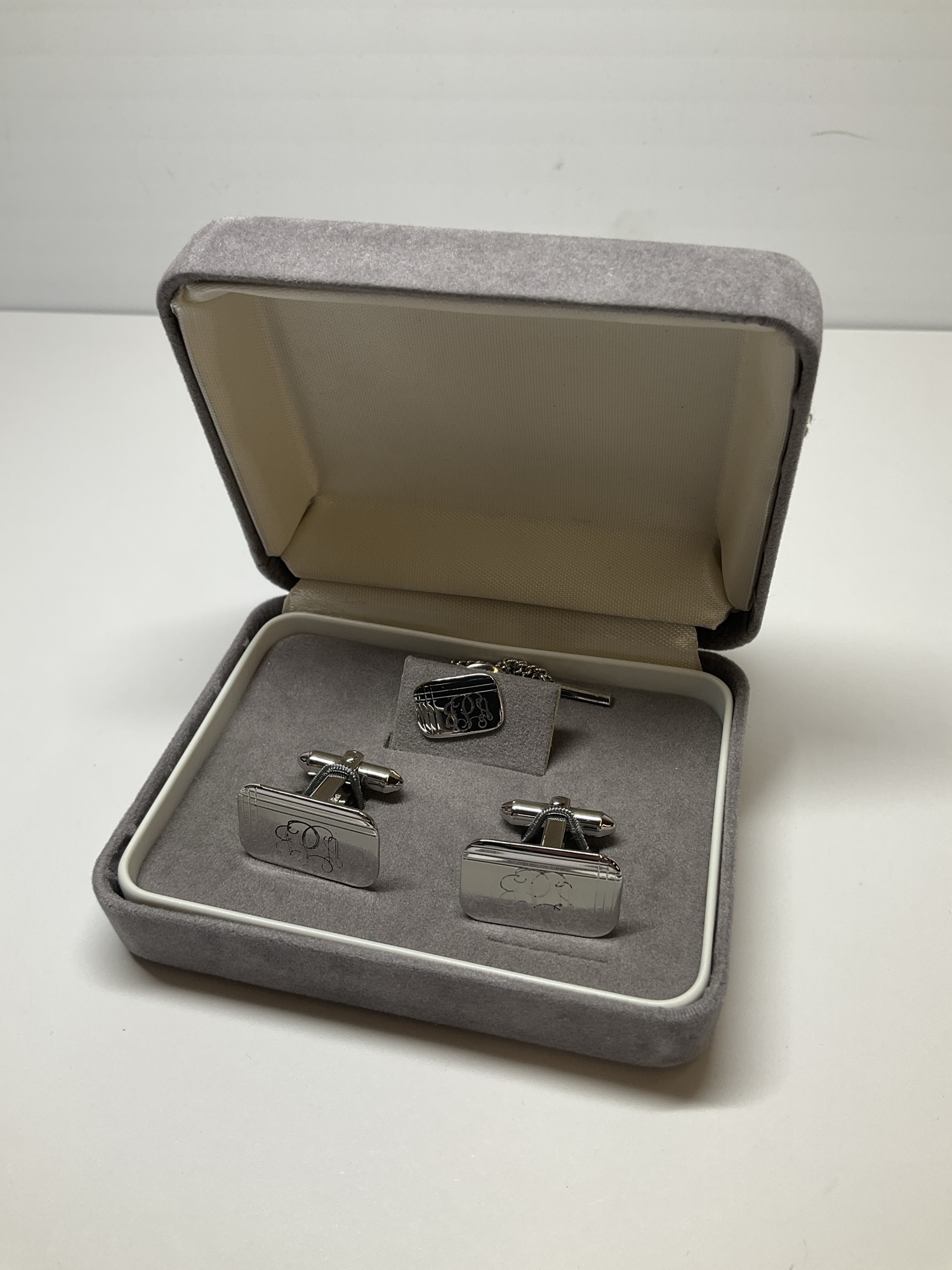 Sterling Silver Monogrammed Cufflink and Tie Tack Set