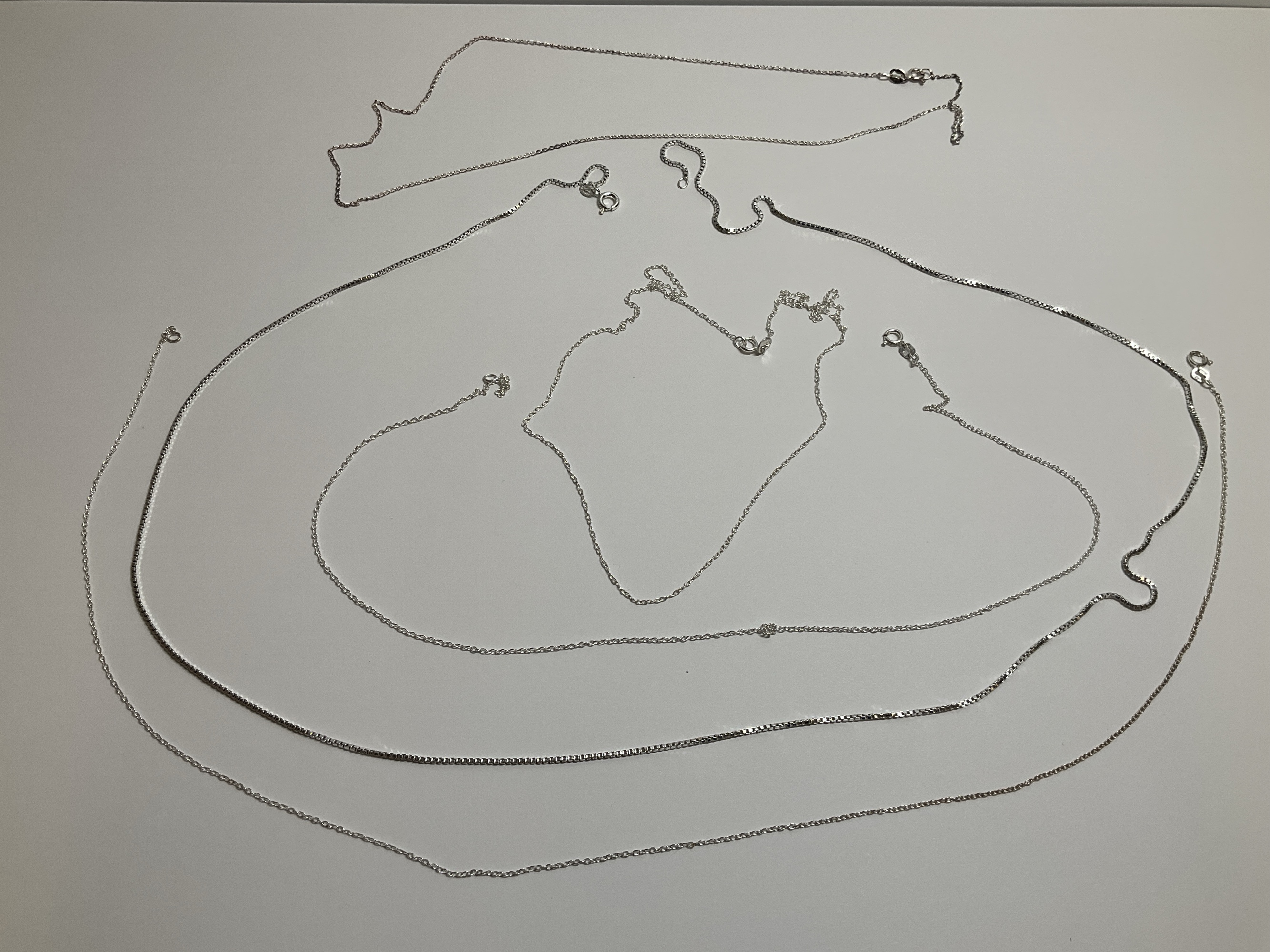 Lot of five sterling silver chains. Total weight 0.31 troy oz.