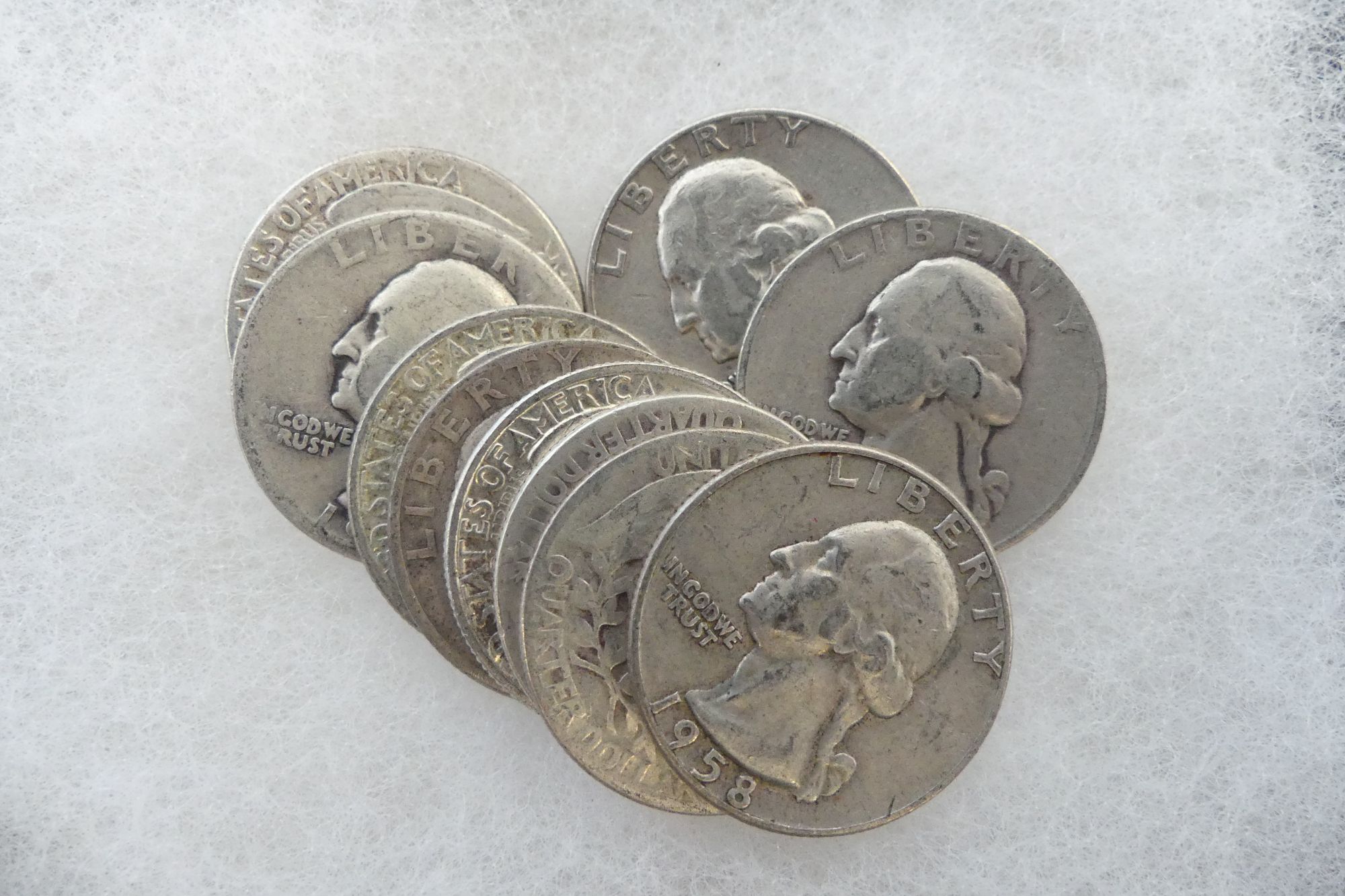 Ten Silver Washington Quarters - pre-1965