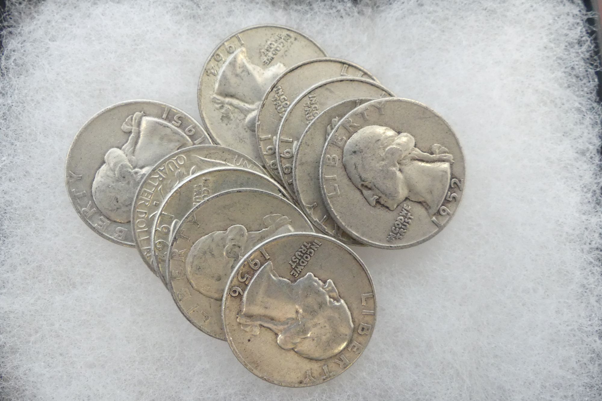 Ten Silver Washington Quarters - pre-1965