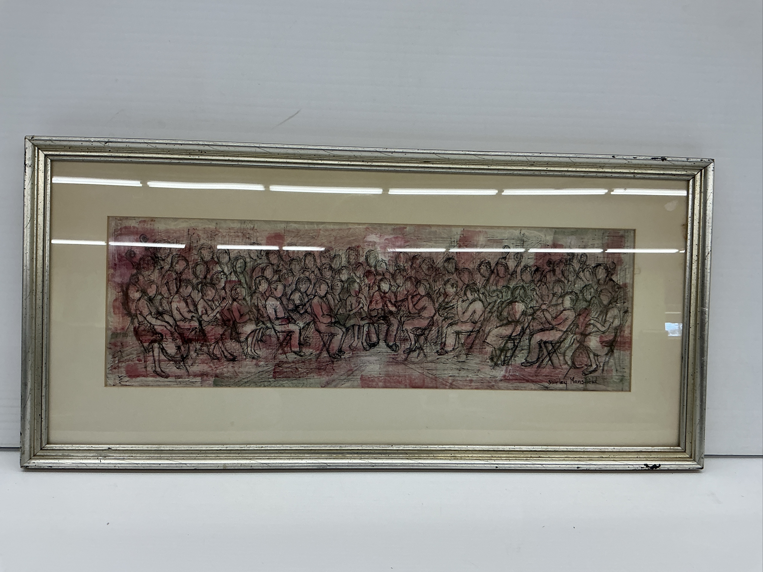 Framed print by Shirley Mansfield depicting an orchestra scene. The print is framed in a silver-toned frame. 14 x 31 in.