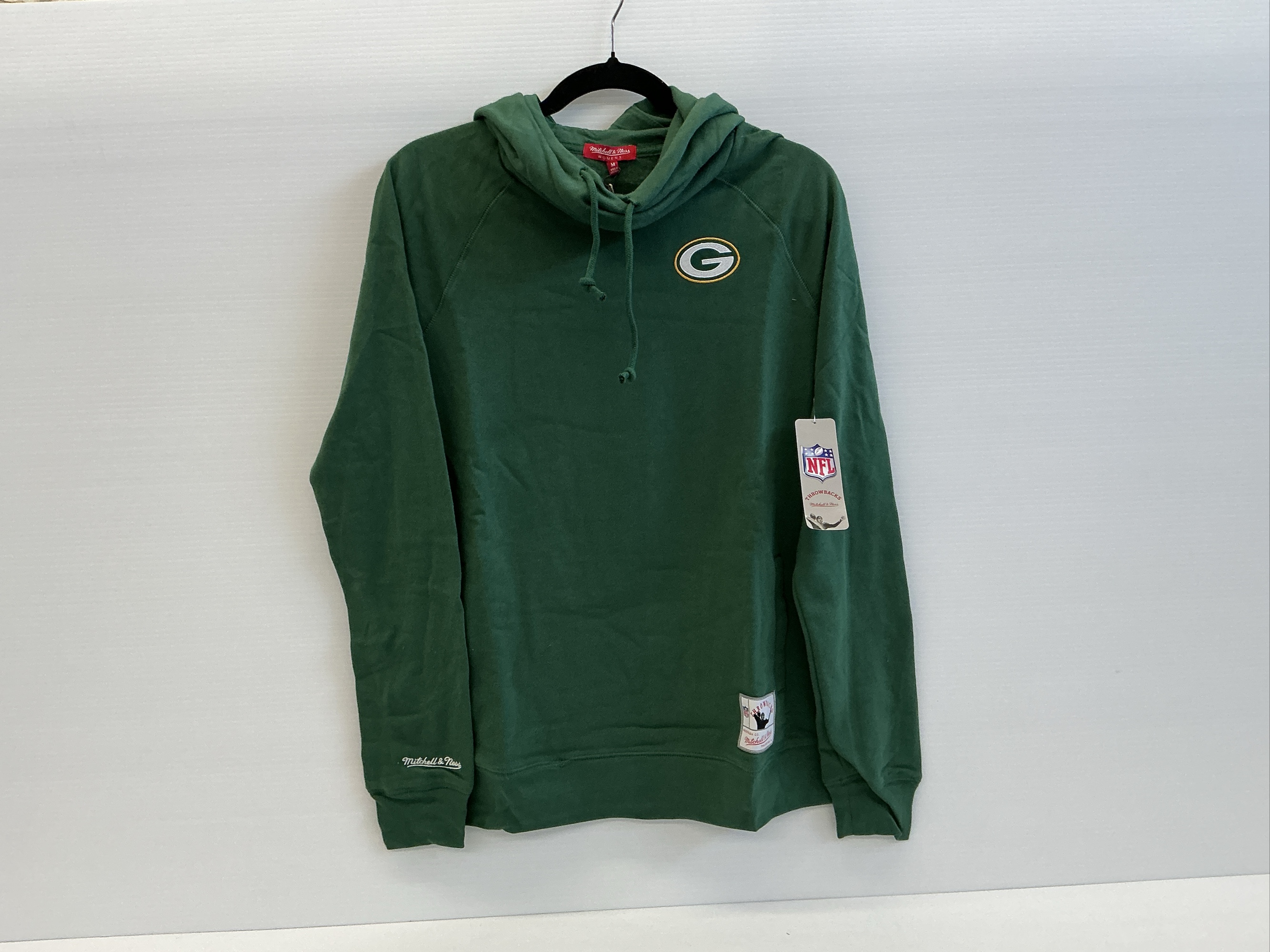 Up for auction is a Mitchell & Ness women's fleece hoodie featuring the Green Bay Packers logo. This is a size medium hoodie in green, perfect for showing your team spirit or staying cozy. Official NFL Apparel