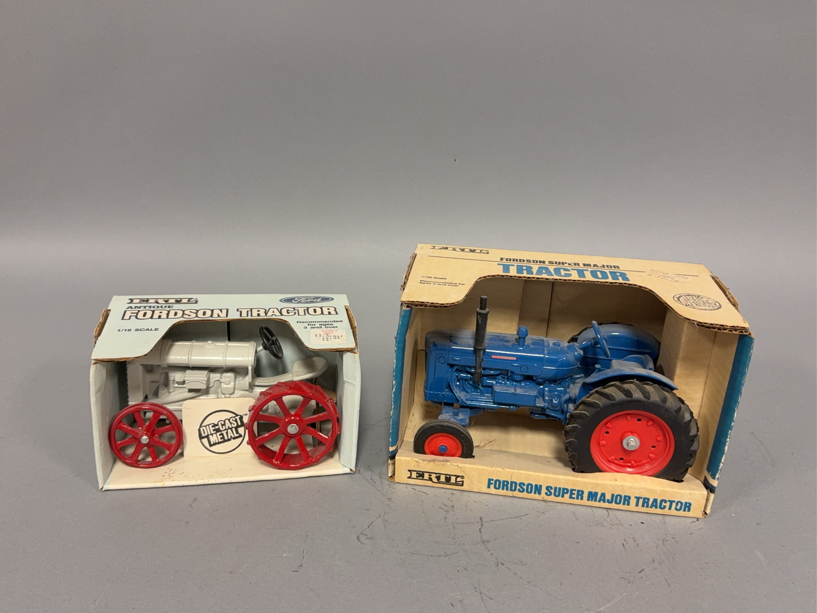 Two Ertl 1:16 scale Fordson tractors-Antique and Super Major