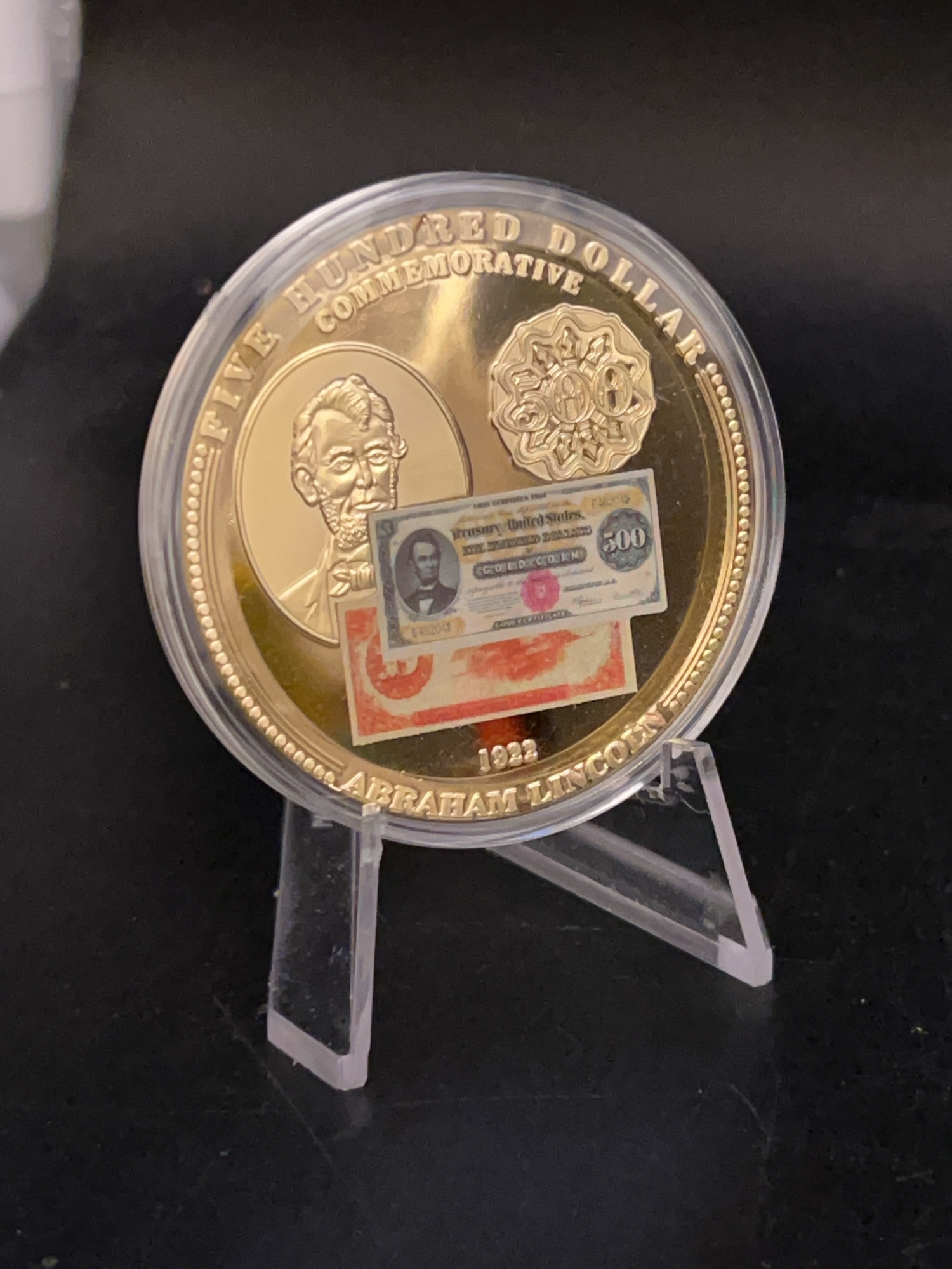 Uncirculated 24k Gold Layered 1922 $500 Lincoln Gold Certificate with COA…..A 05166