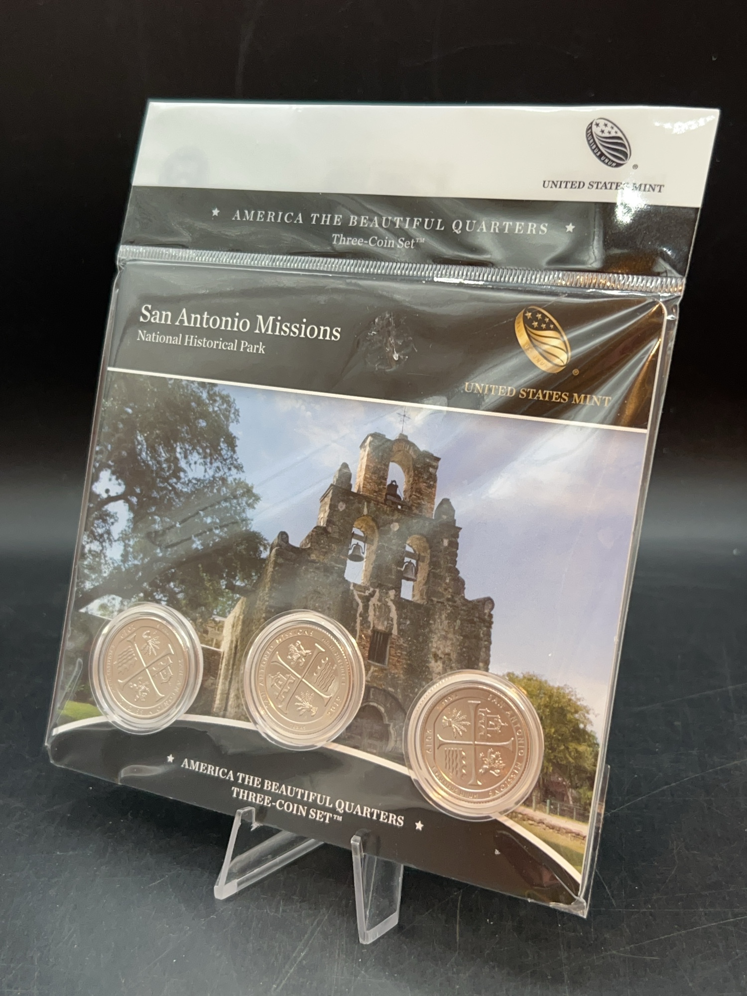 2019 3-Quarter Set San Antonio Missions - National Historical Park Uncirculated and Proof Silver US Mint “America The Beautiful” coins…..info on COA indicates 5.670 grams
