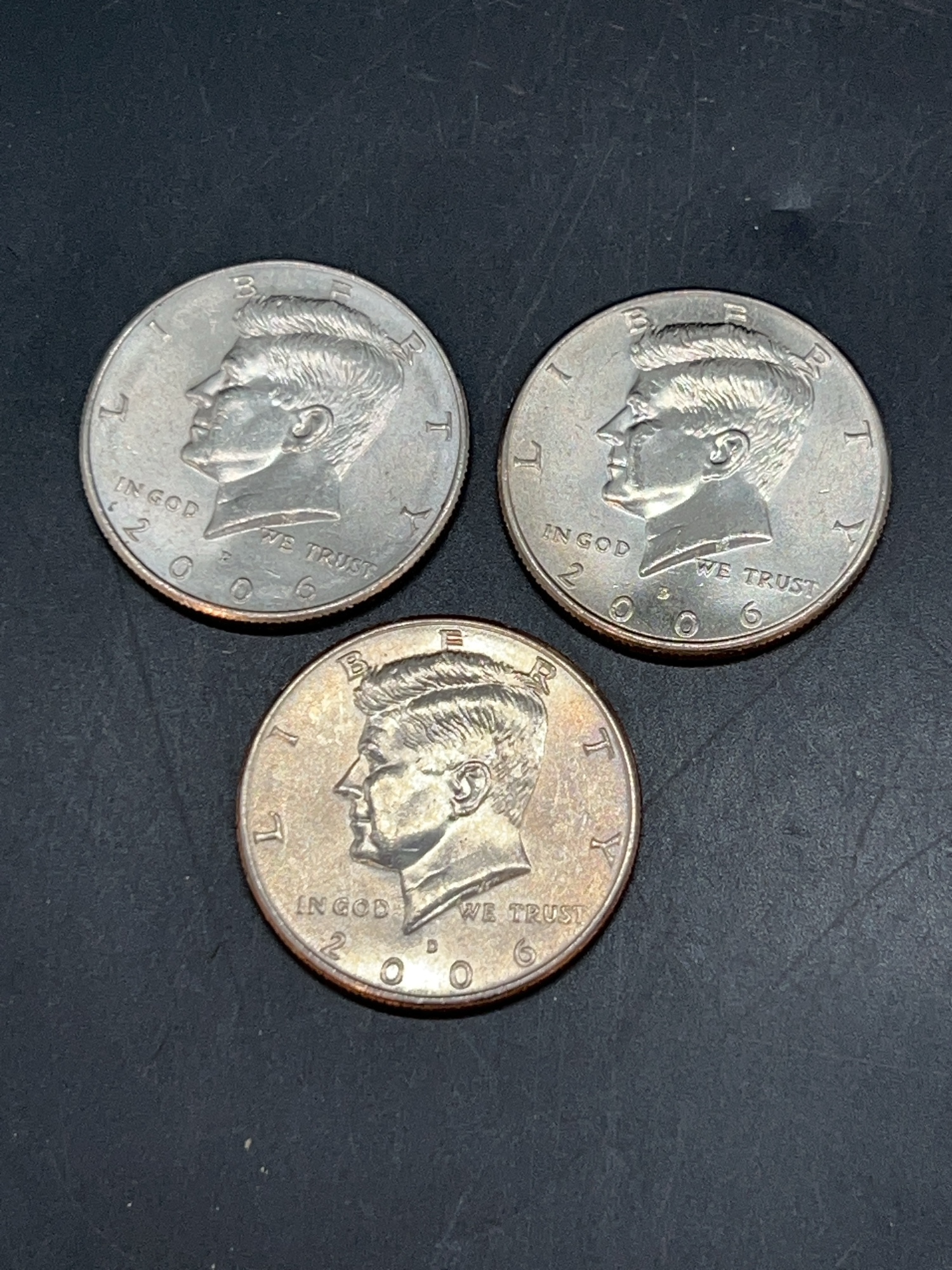 (3) 2006 Kennedy Half Dollars…..2 are mint mark D and 1 is mint mark P