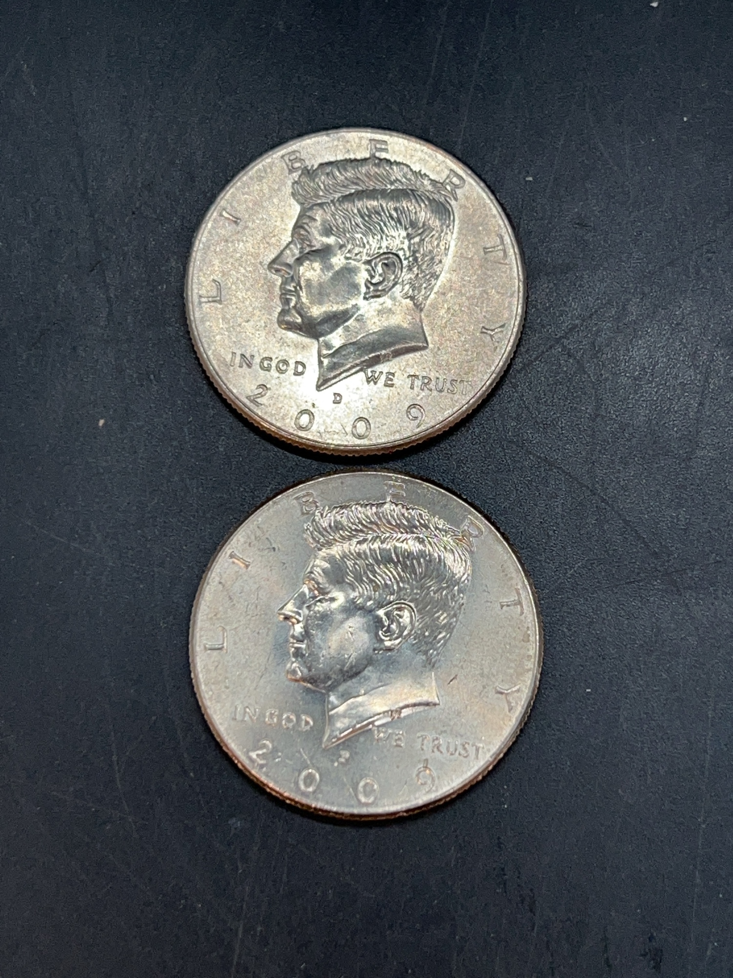 (2) 2009 Kennedy Half Dollars…..1 is mint mark D and 1 is mint mark P