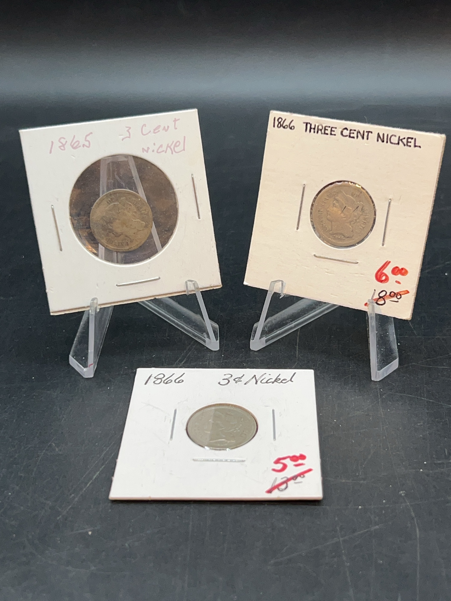 Grouping of (3) 3¢ nickels…..1865 and 1866….all show a varying degree of wear
