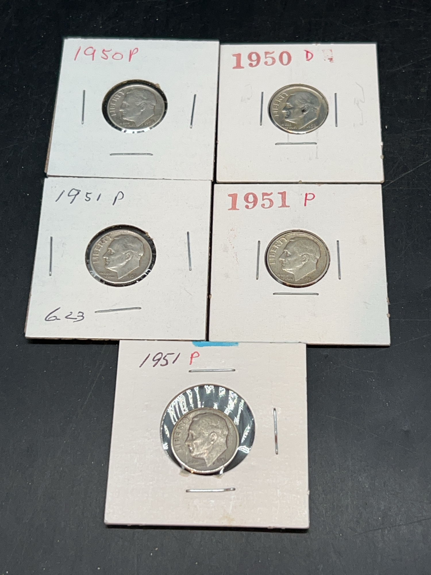 1950-P, 1950-D, and (3) 1951-P Silver Roosevelt Dimes