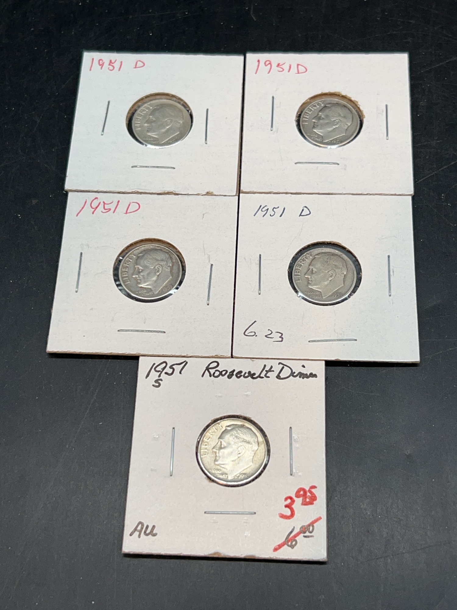 (4) 1951-D and (1) 1951-S Silver Roosevelt Dimes