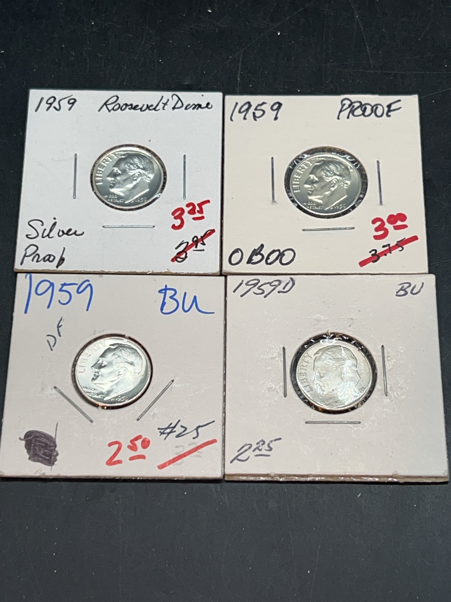 (3) 1959 Silver Roosevelt Dimes and (1) 1959-D Silver Roosevelt Dimes