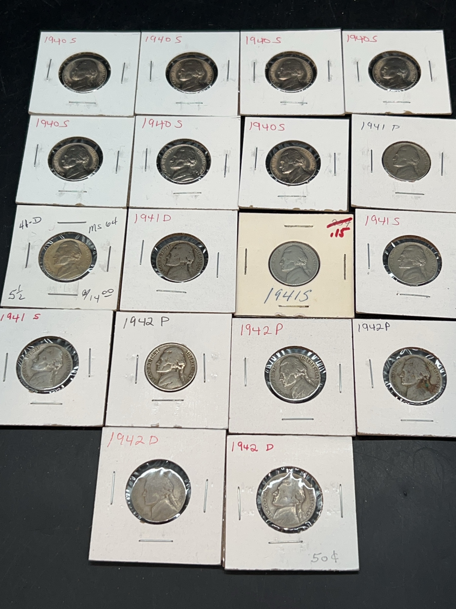 (18) Jefferson Nickels…..years 1940, 1941, 1942….mint marks P/D/S
