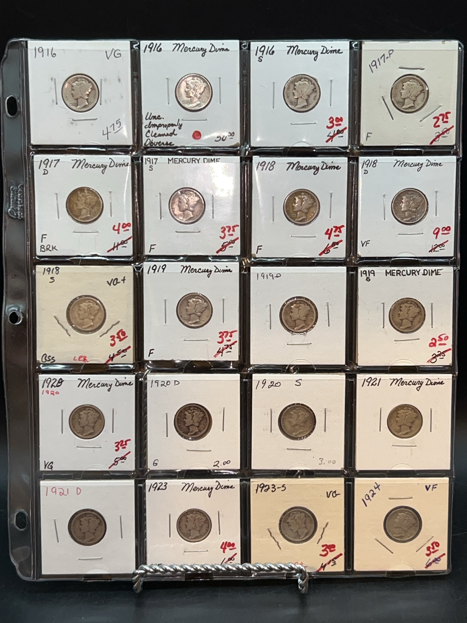 3-Ring binder of (9) sleeves containing Mercury Dimes…..please see all pics…..there are a few sleeves that are not complete full