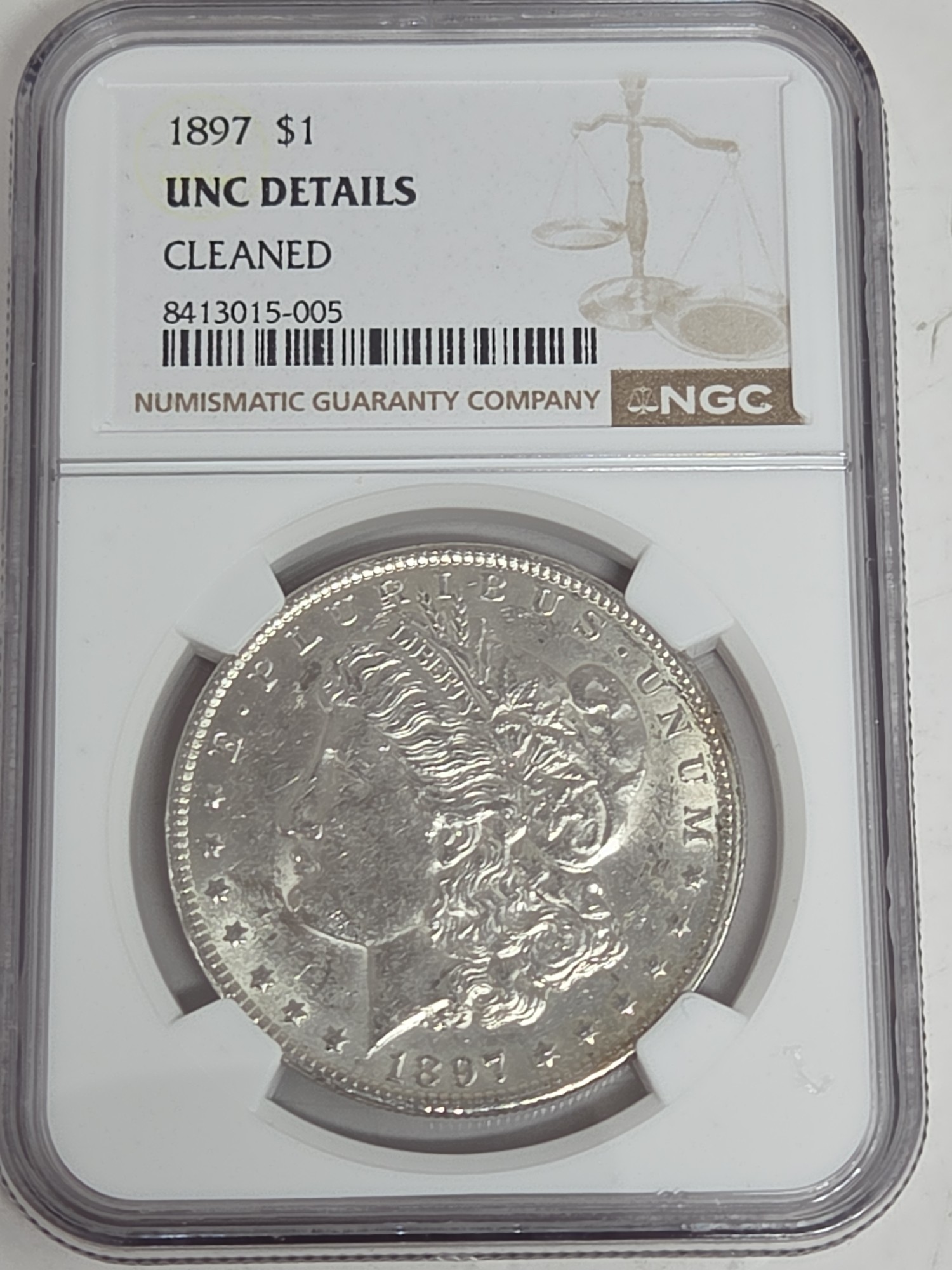 1897 Morgan Silver Dollar NGC UNC Details (CLEANED)