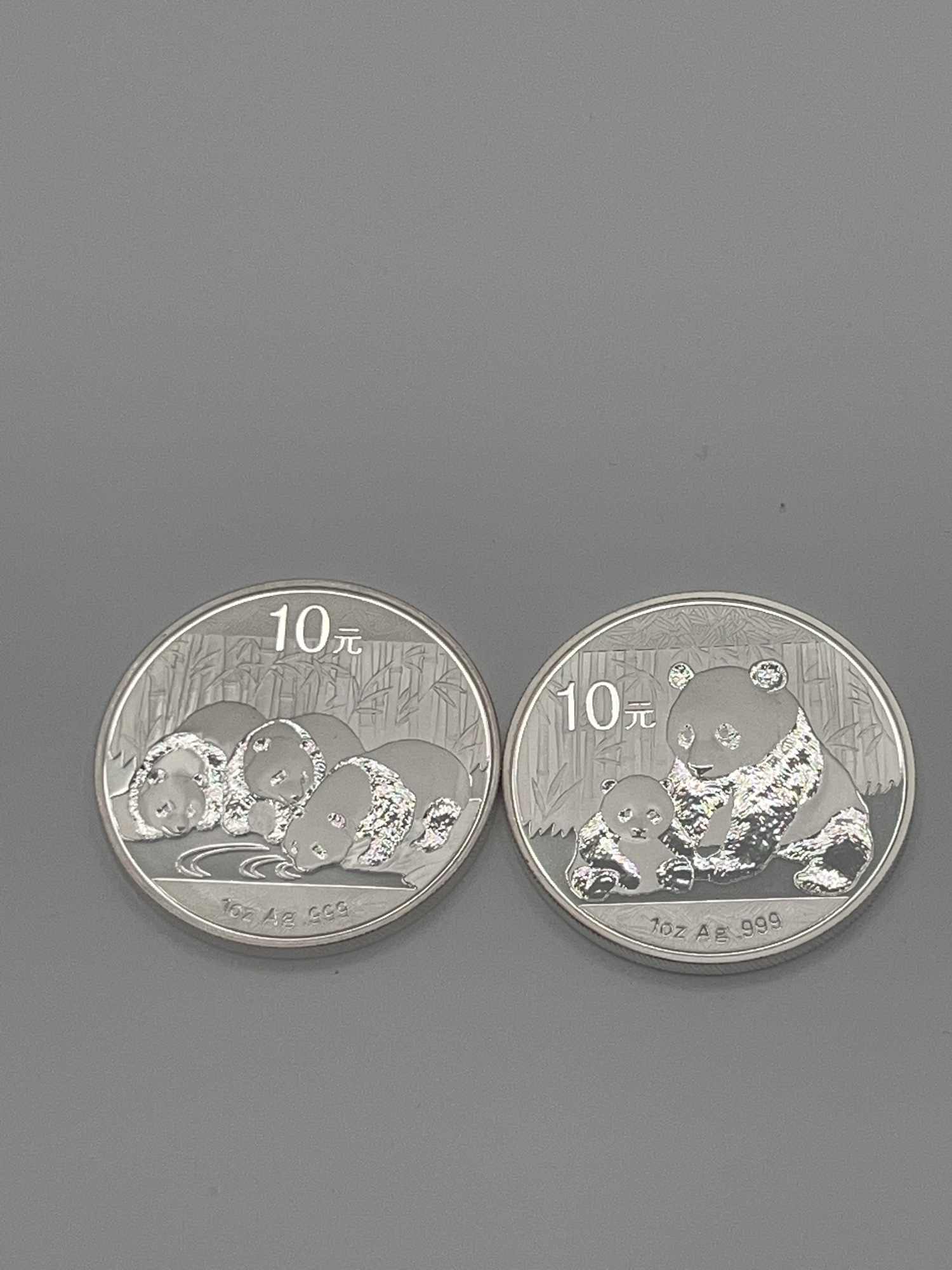 2 Chinese Panda 10 Yuan 2012 2013 1 Oz .999 Silver Rounds