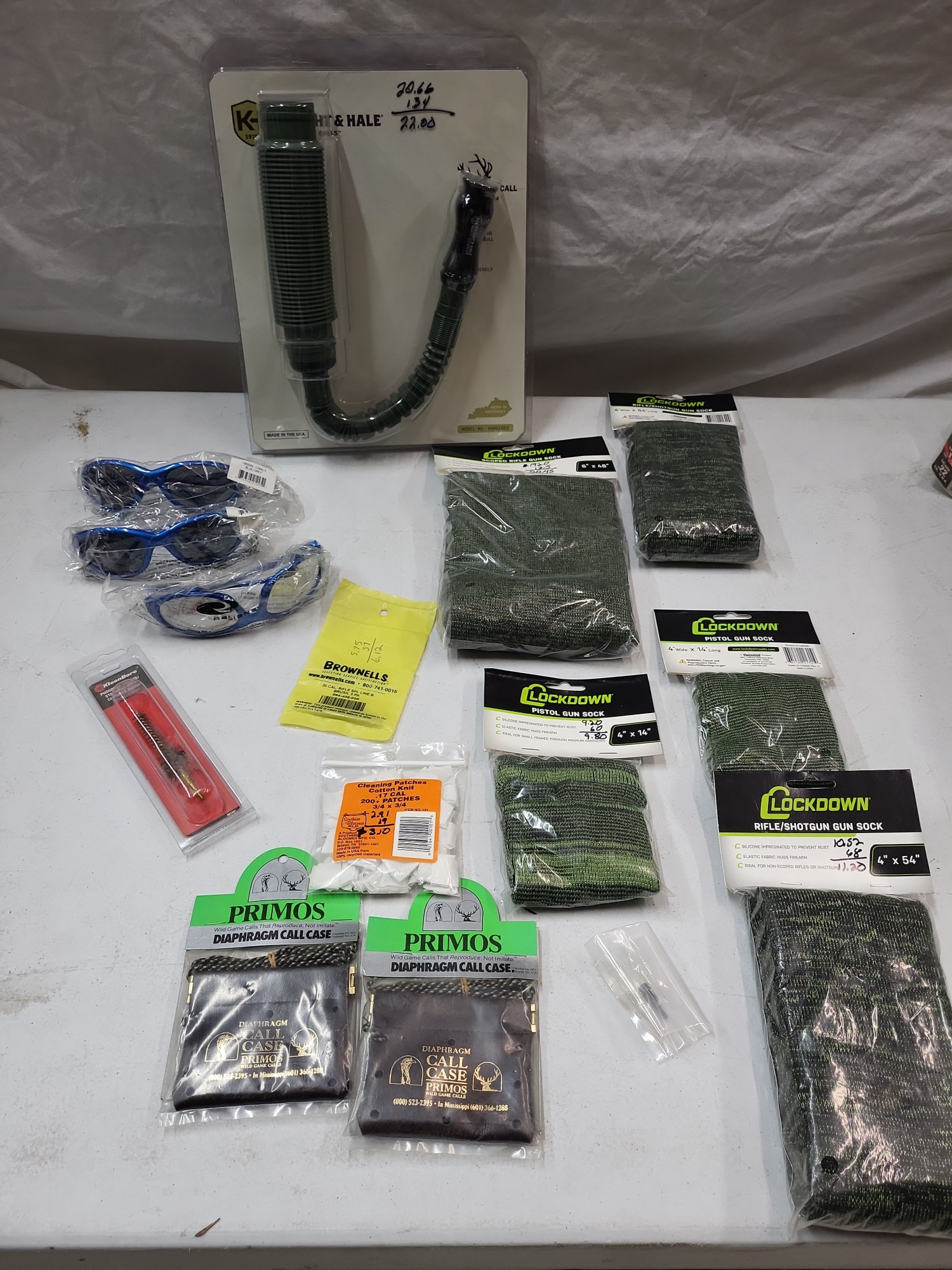 Elk calls, gun socks, sunglasses, cotton patches, cleaning brushes