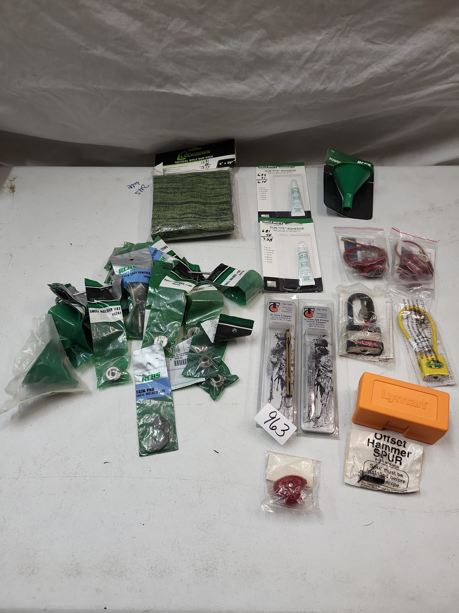 RCBS shell holder, case Remover lot. Gunsack. gun tight adhesive, powder funnel, gun locks, hammer spur, Lyman Receiver site. Online capper