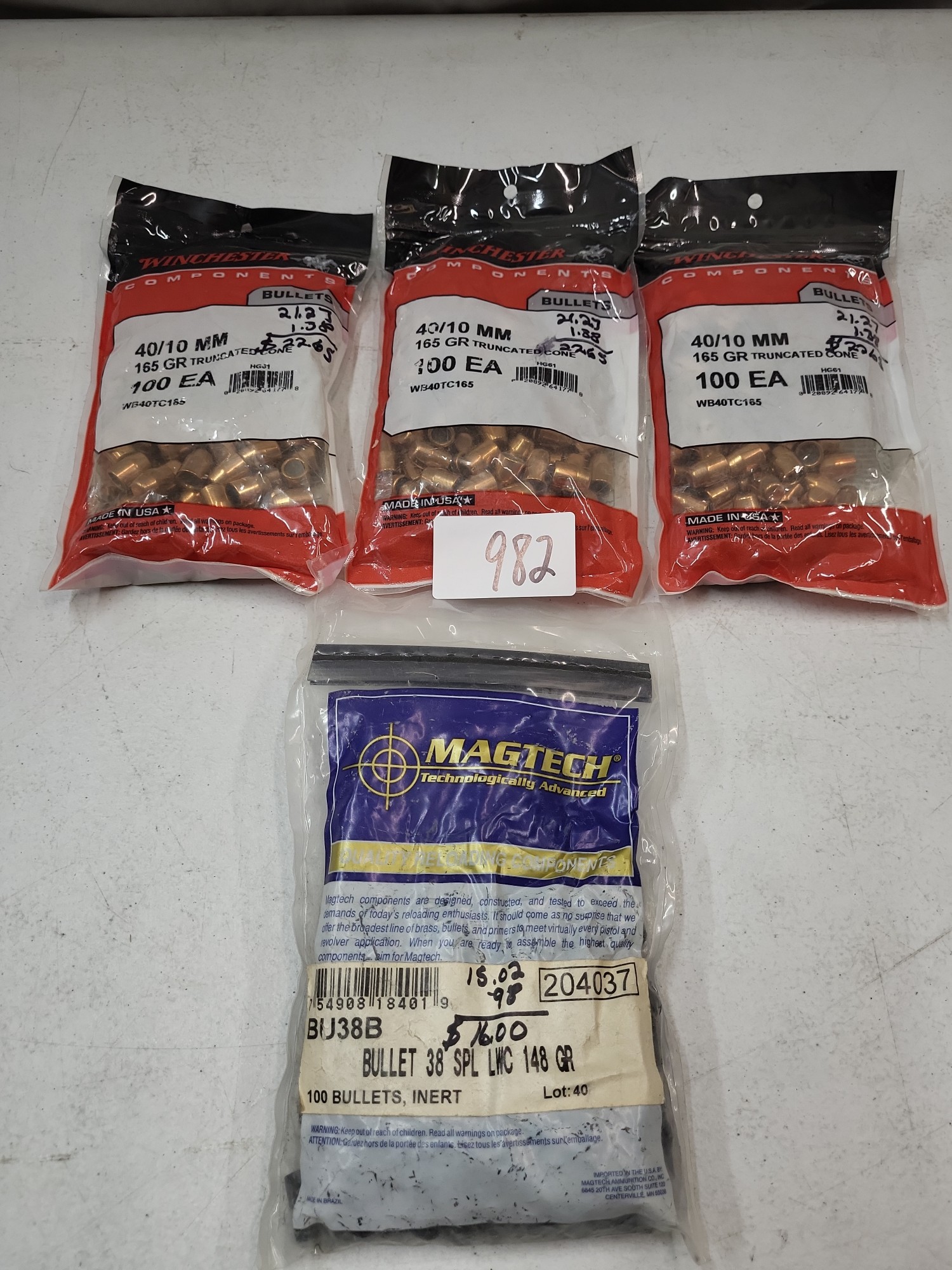 Winchester 40/10MM 165 GR truncated cone lot 3 bags of 100 & Magtech 100 38 Spl lwc 148 gr.
