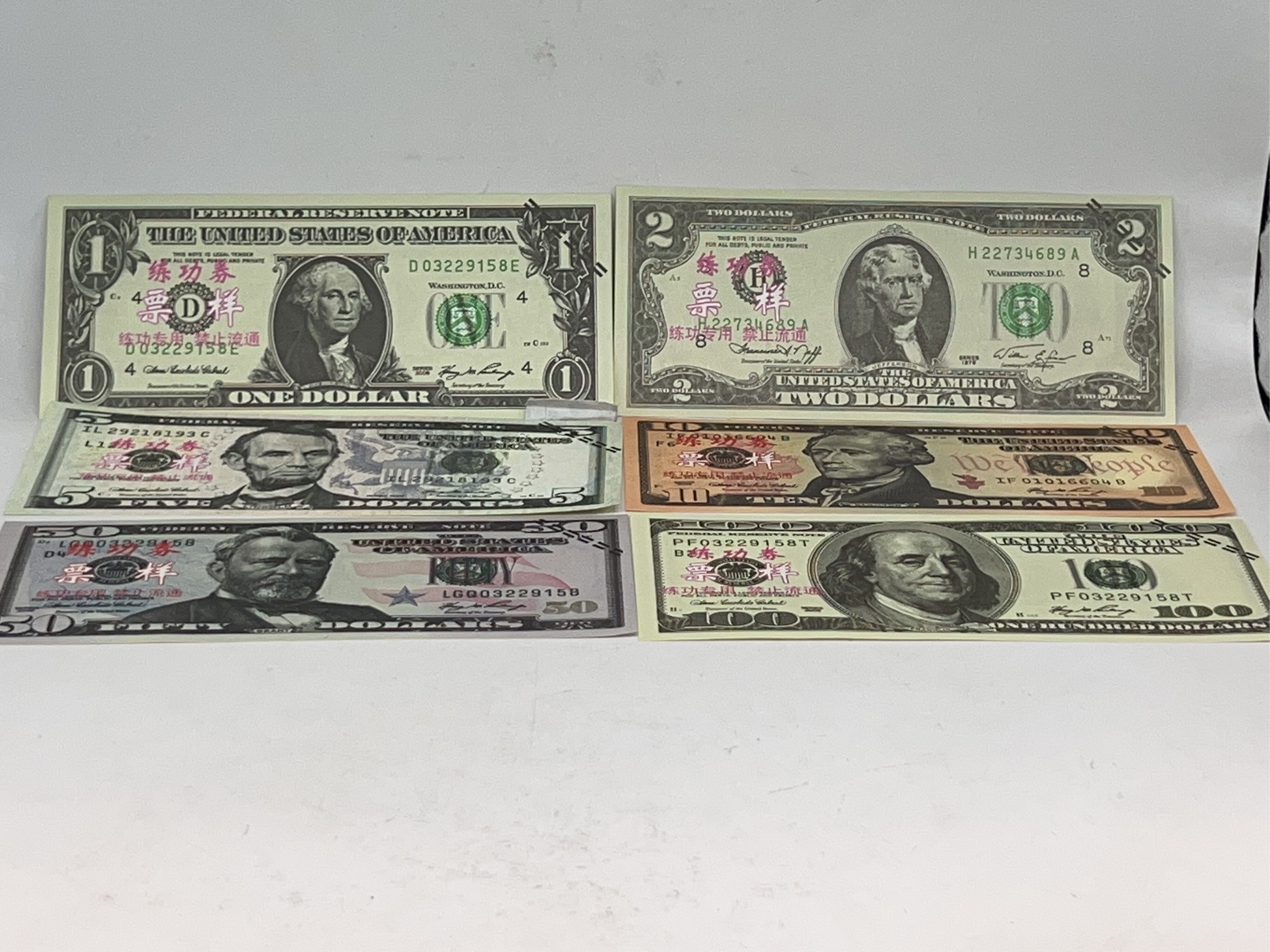 5 Federal Reserve Chinese Copy Notes