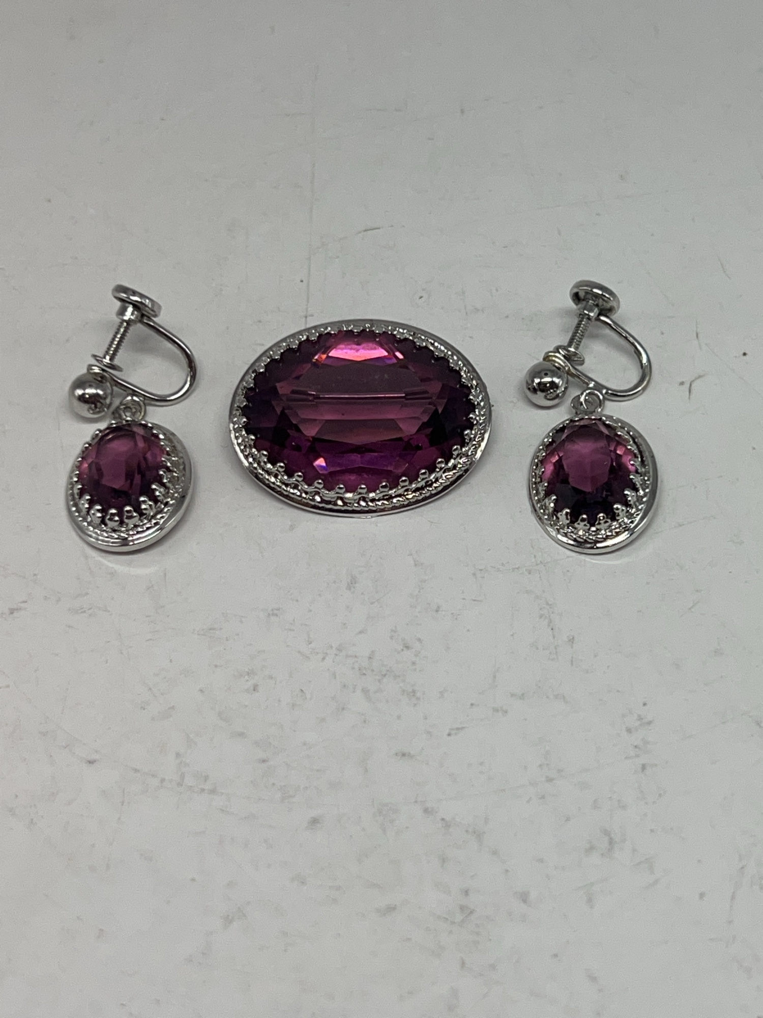 Broochs & Screw Back Back Earrings with Purple Stones Marked Mindcraft Sterling 16.5 Grams