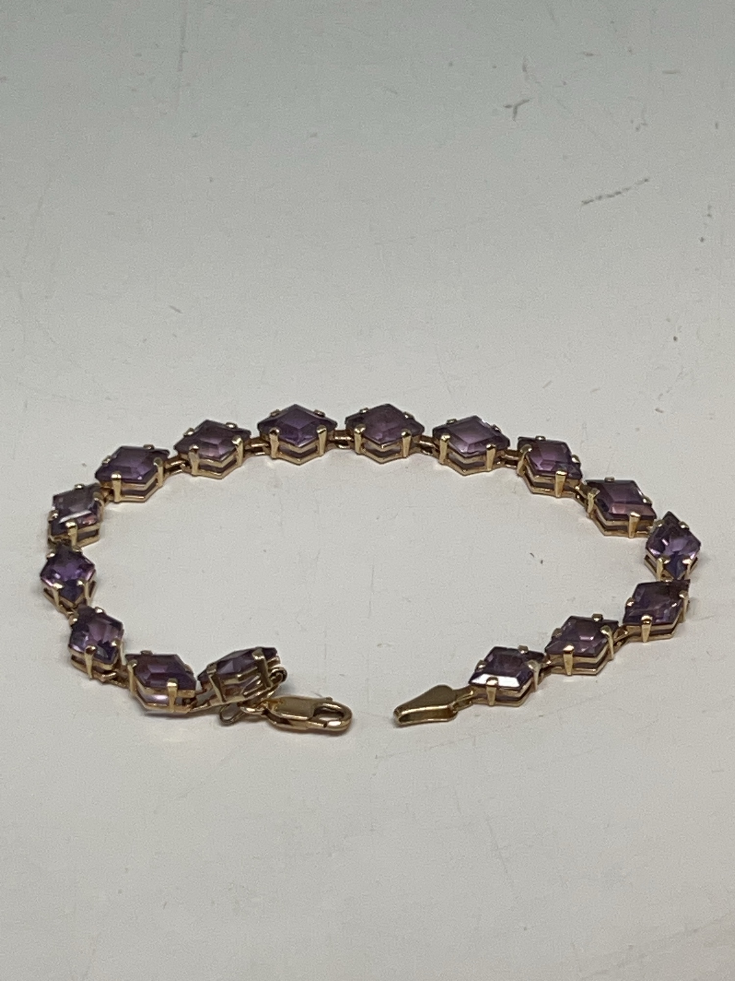 7" Bracelet 14K Gold w/ Diamond Cut Amethyst Looking Stones 7.5 Grams