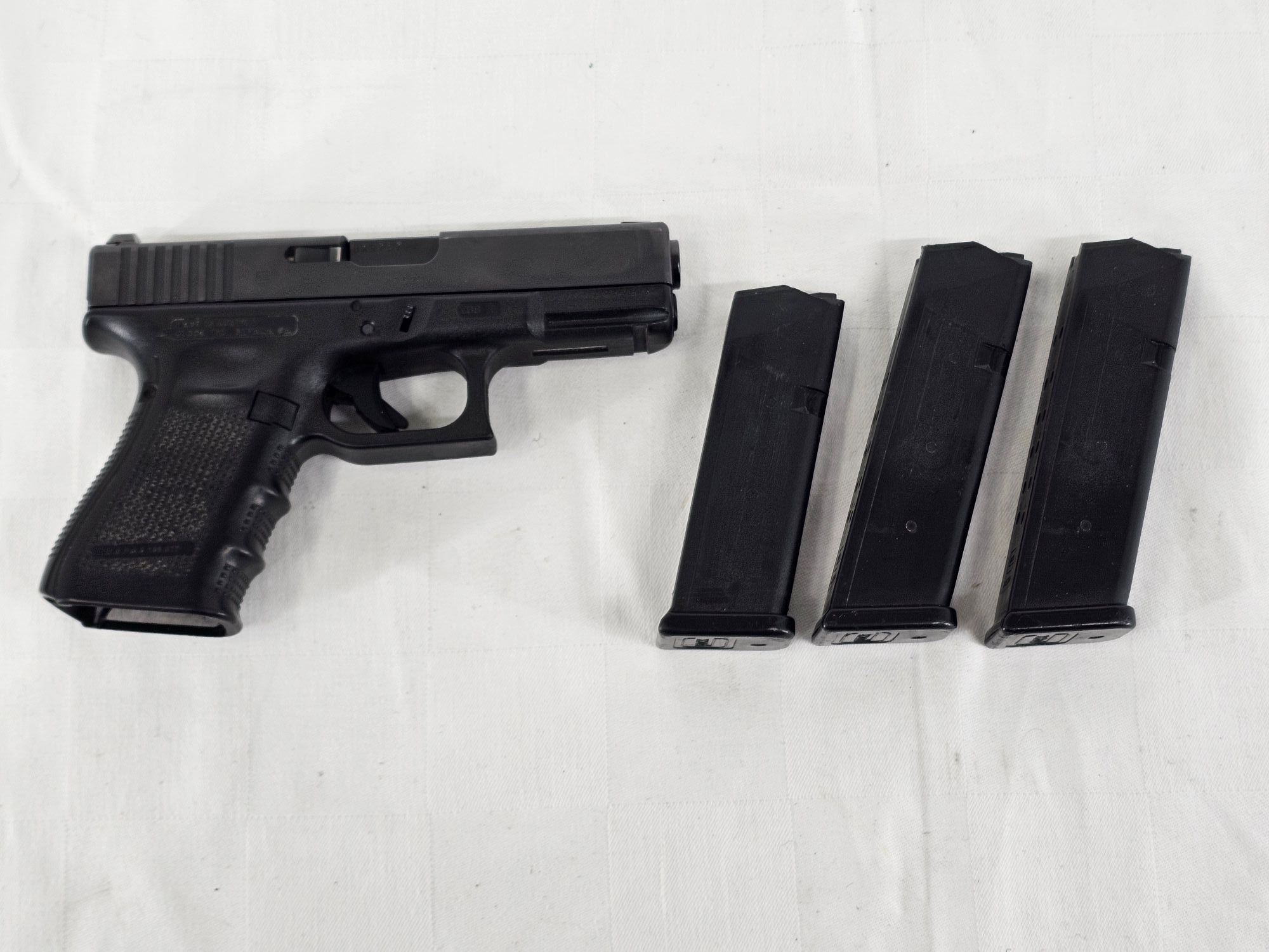Glock G23 Gen 4 .40 Pistol S/N# UXR757 Original Box & Paper, 3 magazines, 1 cable lock, 1 plastic slide stop