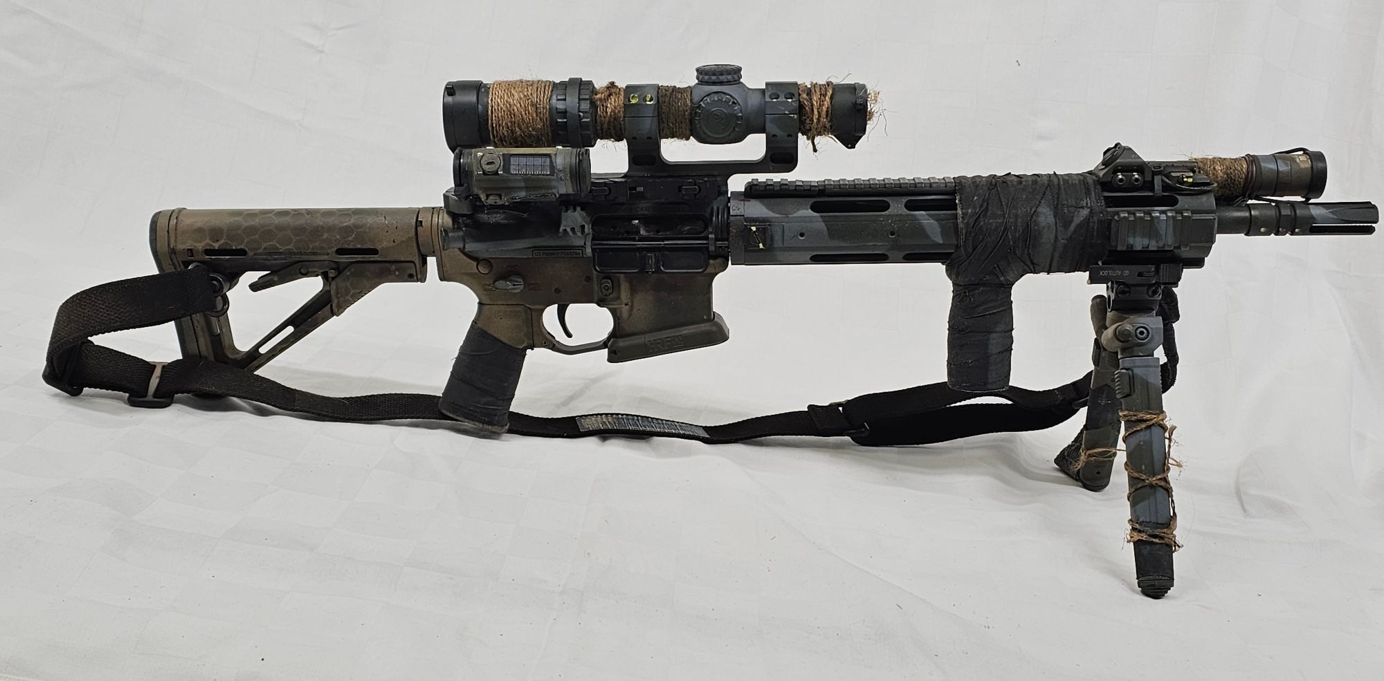 COMES WITH LONG RANGE OPTICS, HOLOSUN RED DOT SIGHT, FORE GRIP, SHORT LEG BIPOD, TACTICAL FLASHLIGHT, CUSTOM PAINT JOB, ADDITIONAL BARREL BARREL