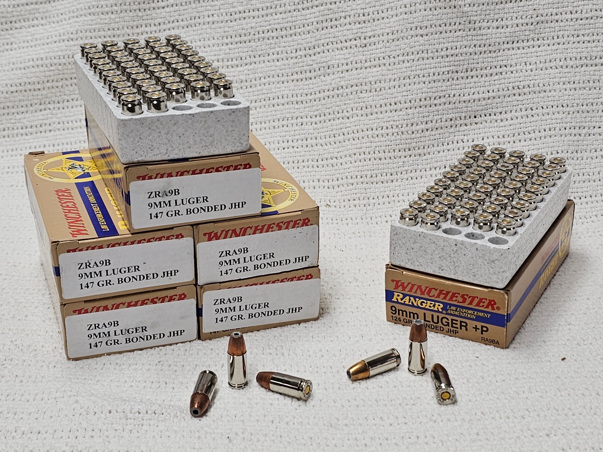 Winchester Ranger Bonded LE 9mm Luger 147 Gr. Bonded JHP, 50 Rounds(5x Boxes), 9mm Luger+P 124 GR. Bonded JHP 50 Round Box