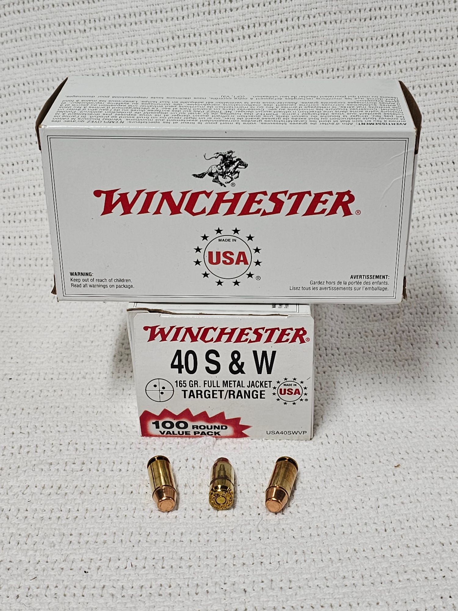 Winchester 40 S&W 165 Gr. FMJ Target/Range 100 rounds Value Pack(2x Boxes)