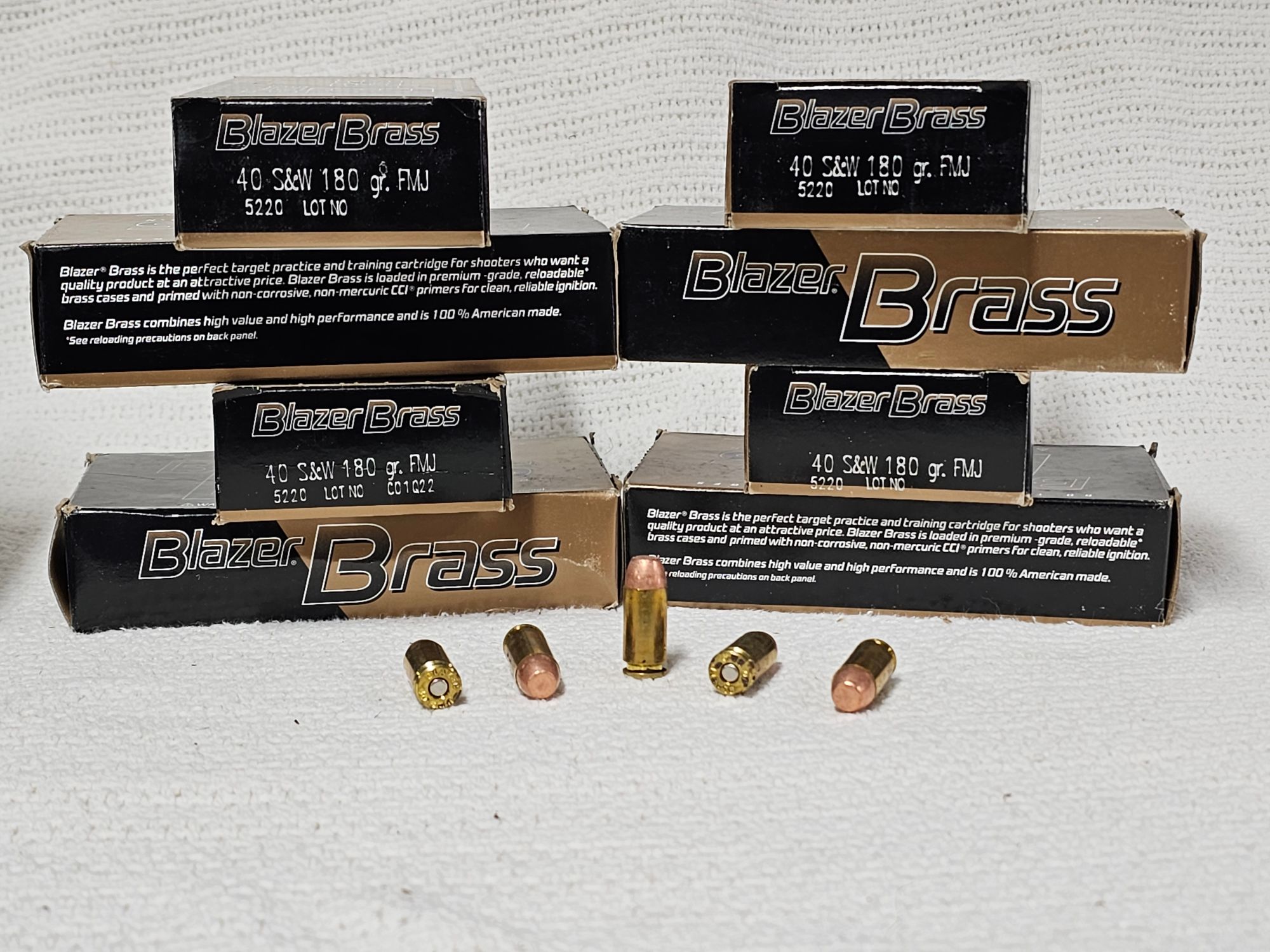 Blazer Brass Ammunition .40 S&W 180 Gr. FMJ, 50 Rounds(8x Boxes)