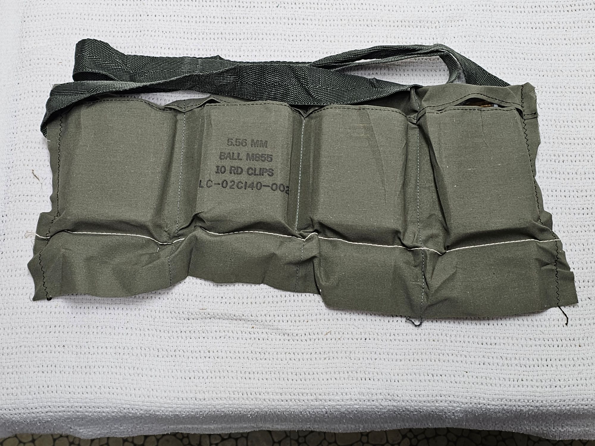 5.56 Green Tip Ammunition in 4 pouch Bandolier, 120 rounds(30 round boxes, 4 boxes)